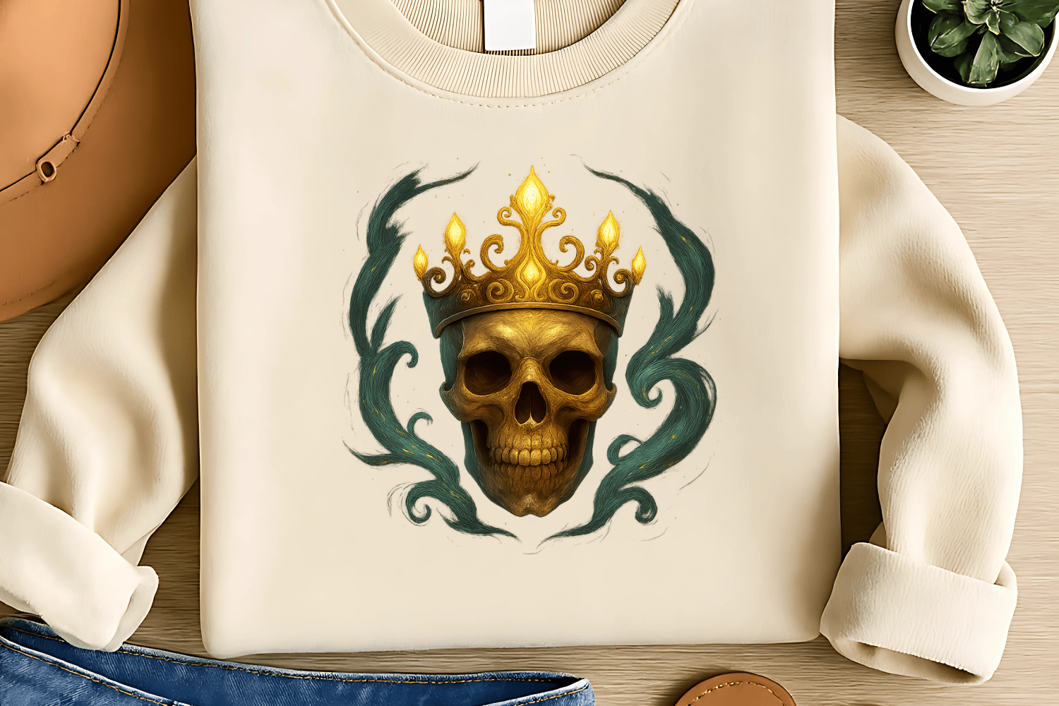 Enchanted Skeleton Crown Sublimation PNG – Magical Royal Skull for T-Shirts – Mystical Gothic Halloween – 300 DPI Instant Digital Download