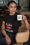 Add a splash of color to your morning coffee or tea ritual! These "Plan Your Freedom" ceramic mugs, not only have a beautiful design on them, but also a colorful rim, handle, and inside, so the mug is bound to spice up your mug rack.