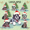 Cute Lhasa Apso dogs x 4 with Christmas hat and scarf. With and without Christmas tree; 8 PNG files.