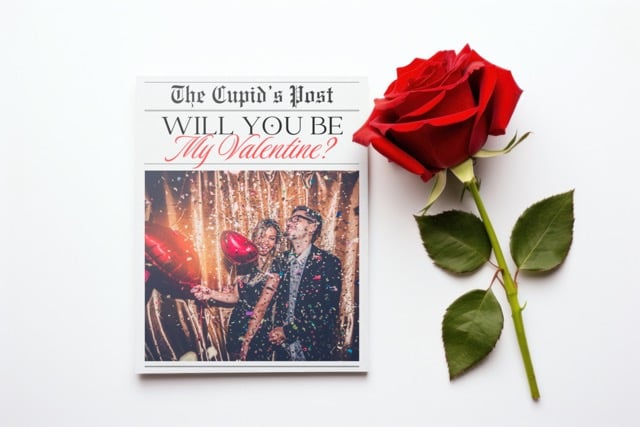 Looking for the perfect way to pop the question? Our Custom Newspaper includes a special section for "Will You Be My Forever Valentine" that adds a personal touch to your proposal or romantic gesture.