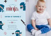 Celebrate your child’s birthday with this fun and action-packed ninja themed birthday invitation template. Featuring playful ninja characters and space to add your child’s photo, this invitation is perfect for a ninja warrior birthday party or martial arts themed celebration.