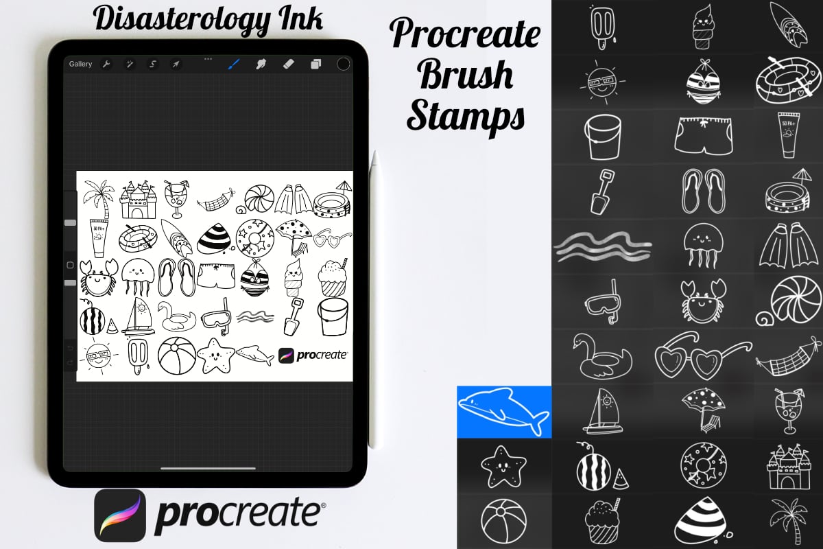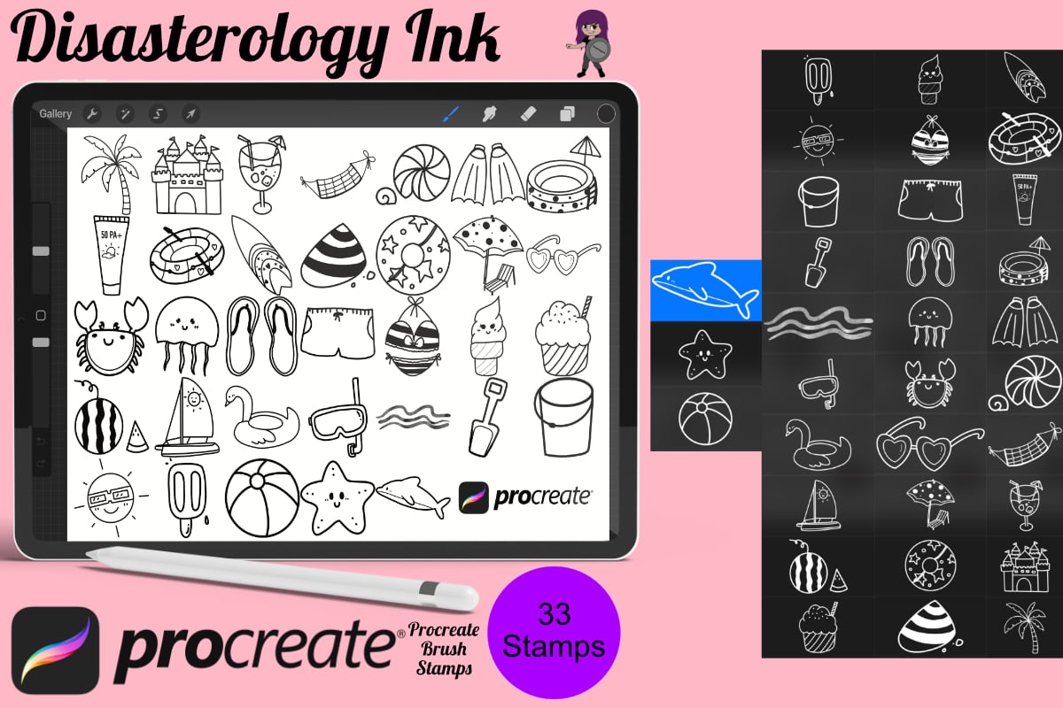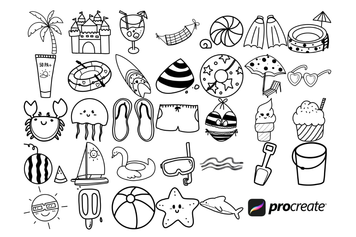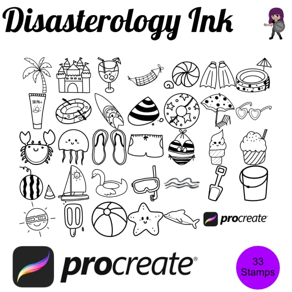 Procreate stamps save time when drawing, saving the effort of having to recreate the same thing for multiple designs and projects, save time on your design by purchasing these summer brush stamps so you can utilise that time on creating more beautiful art.
