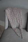 All slightly off-kilter in some way, these three shawls are designed to be versatile everyday pieces. They only require the most basic lace skills, and are well within the reach of any knitter who knows how to handle a yo or two. They were designed for laceweight... don't be afraid of the fineness of the yarn, you're still using pretty big needles. There are three shapes: a rectangle, a medium-deep symmetrical triangle, and a shallow but wide bias triangle. Each adapts to whatever quantity of yarn you have.