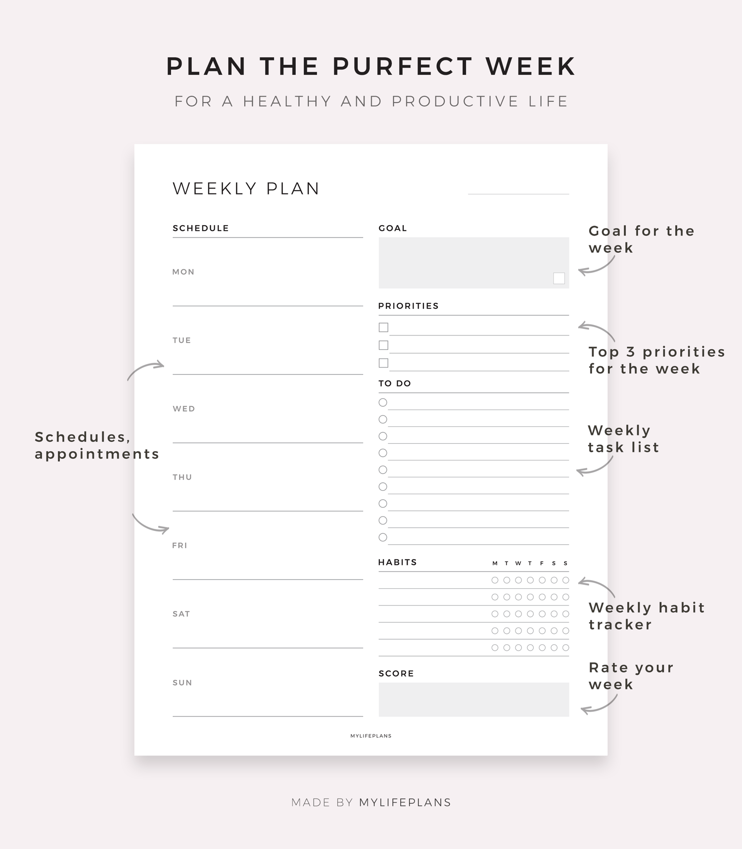 Productivity Weekly Planner Digital, Compatible with Goodnotes, Notability, Ipad