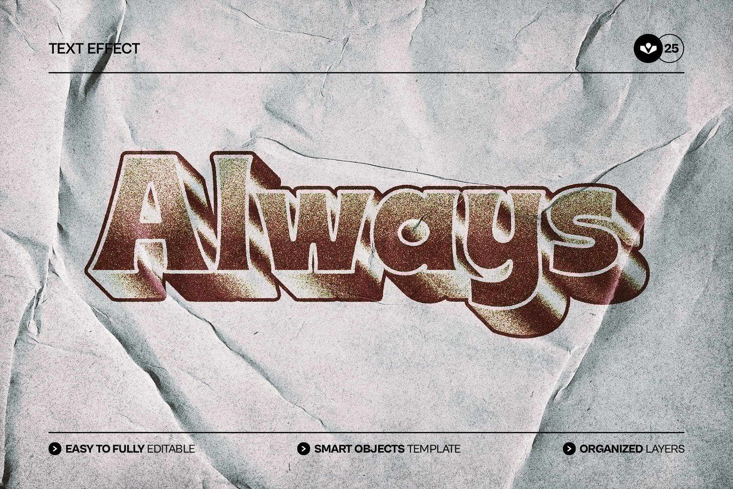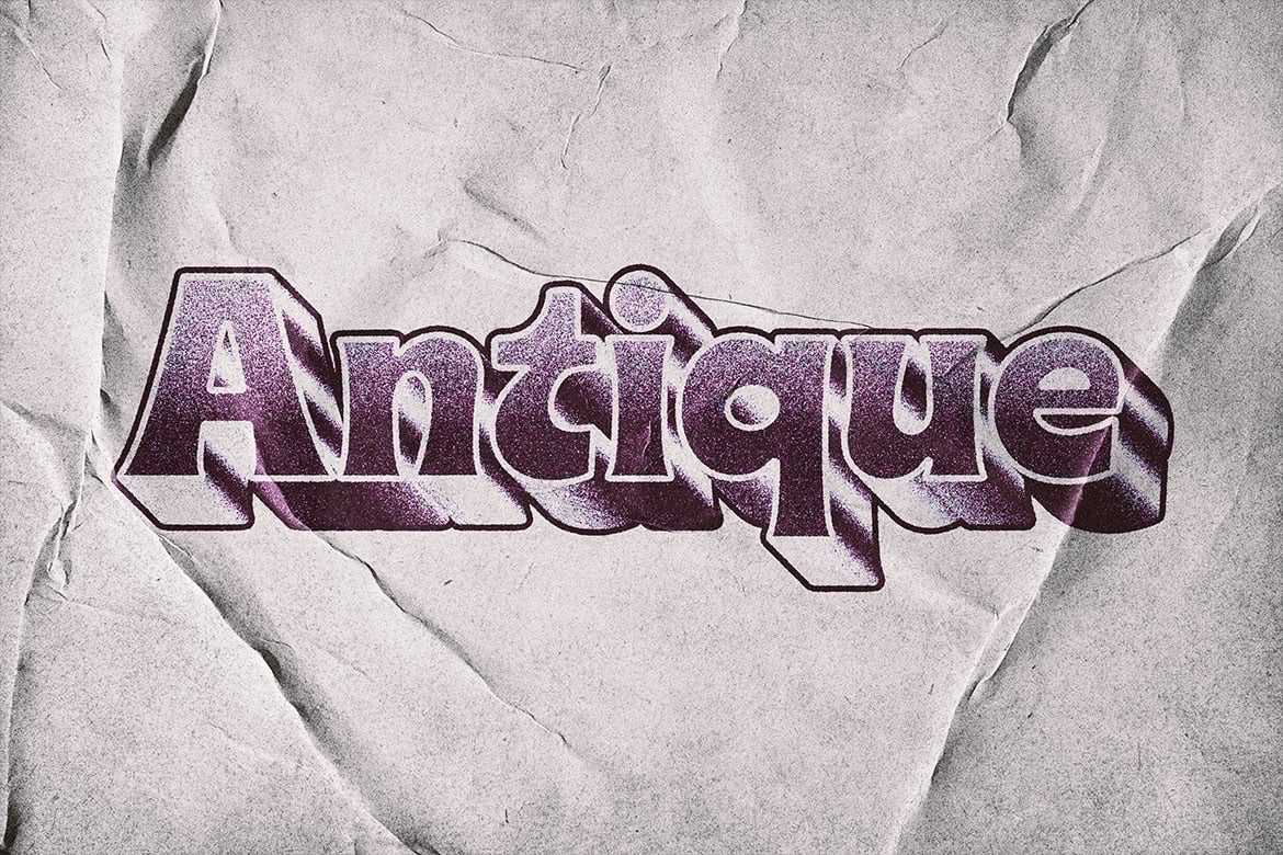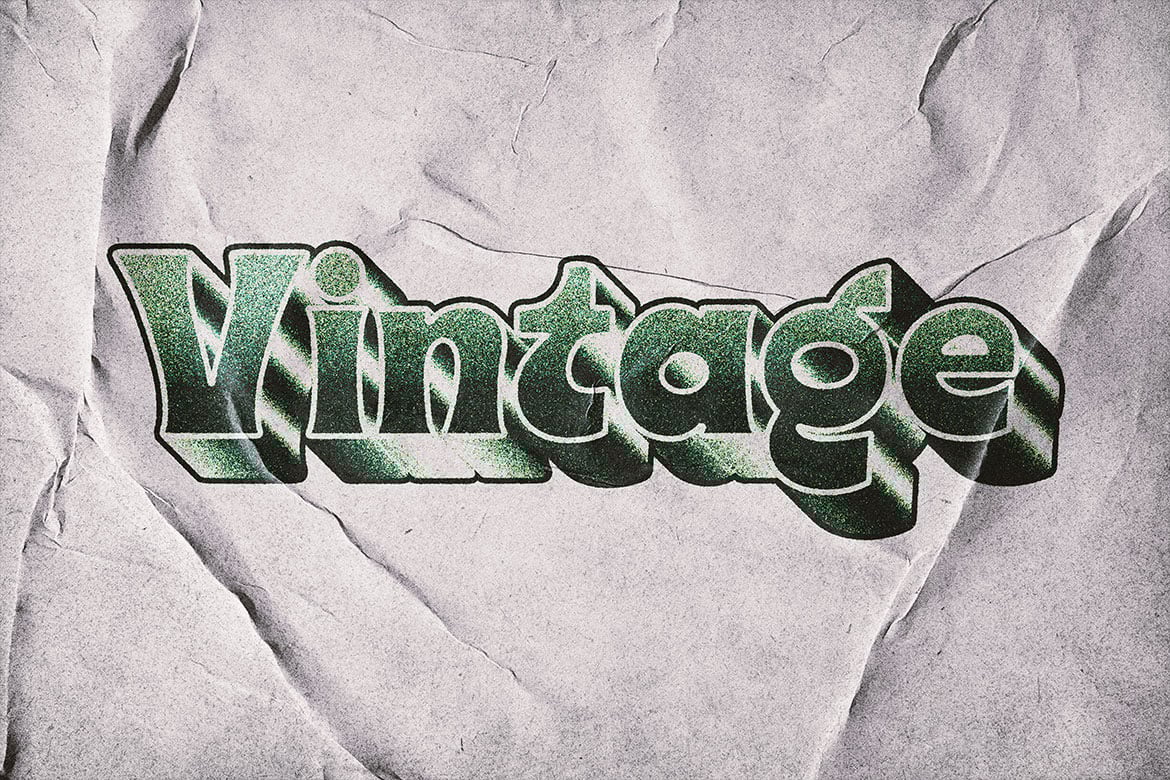 Combines retro styling, grainy texture, and crumpled-paper depth to create a bold, vintage-inspired look. Designed with thick, blocky 3D letters that give it a chunky, nostalgic feel reminiscent of vintage signage or old-school print graphics.
