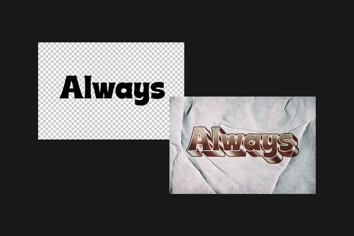 Simply open the Smart Object, delete the default text, type any text and save the effect applies automatically. These layout will handle the styling effects of the words.