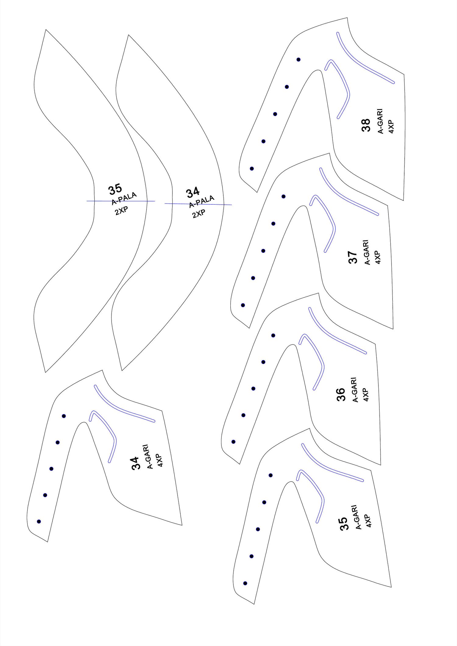 patrones en PDF hoja A3 Y A4 conprimido WinRar, serie del 34 AL 39.