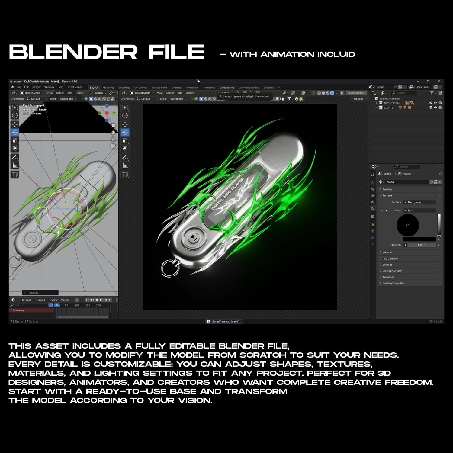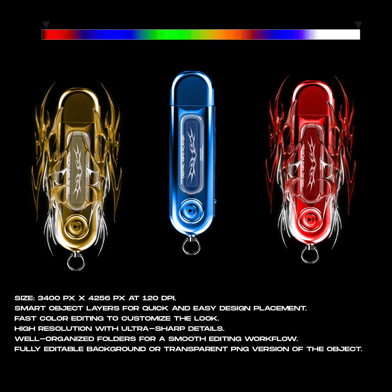Retro-Futuristic MP3 Player Asset with Tribal Flames
