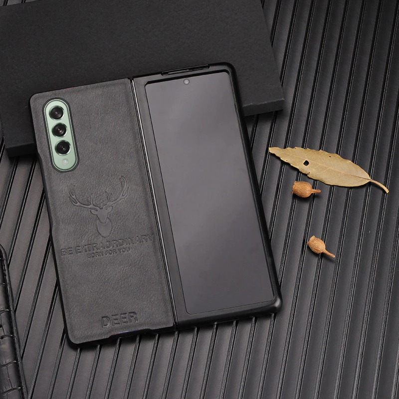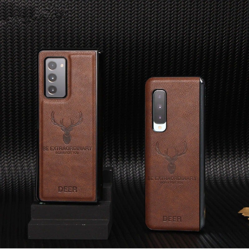 New Retro Leather Deer Design Samsung Galaxy Z Fold 3 Case Cover