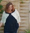 - Fil : épaisseur fingering. Le modèle de base est en Relax de (Vi)laines (50% laine, 50% coton 400 m / 100 g), coloris “jouer à panda pendu, et a nécessité 1136 m pour une taille XL sans ajustement (le modèle fait 117 cm de tour de poitrine).