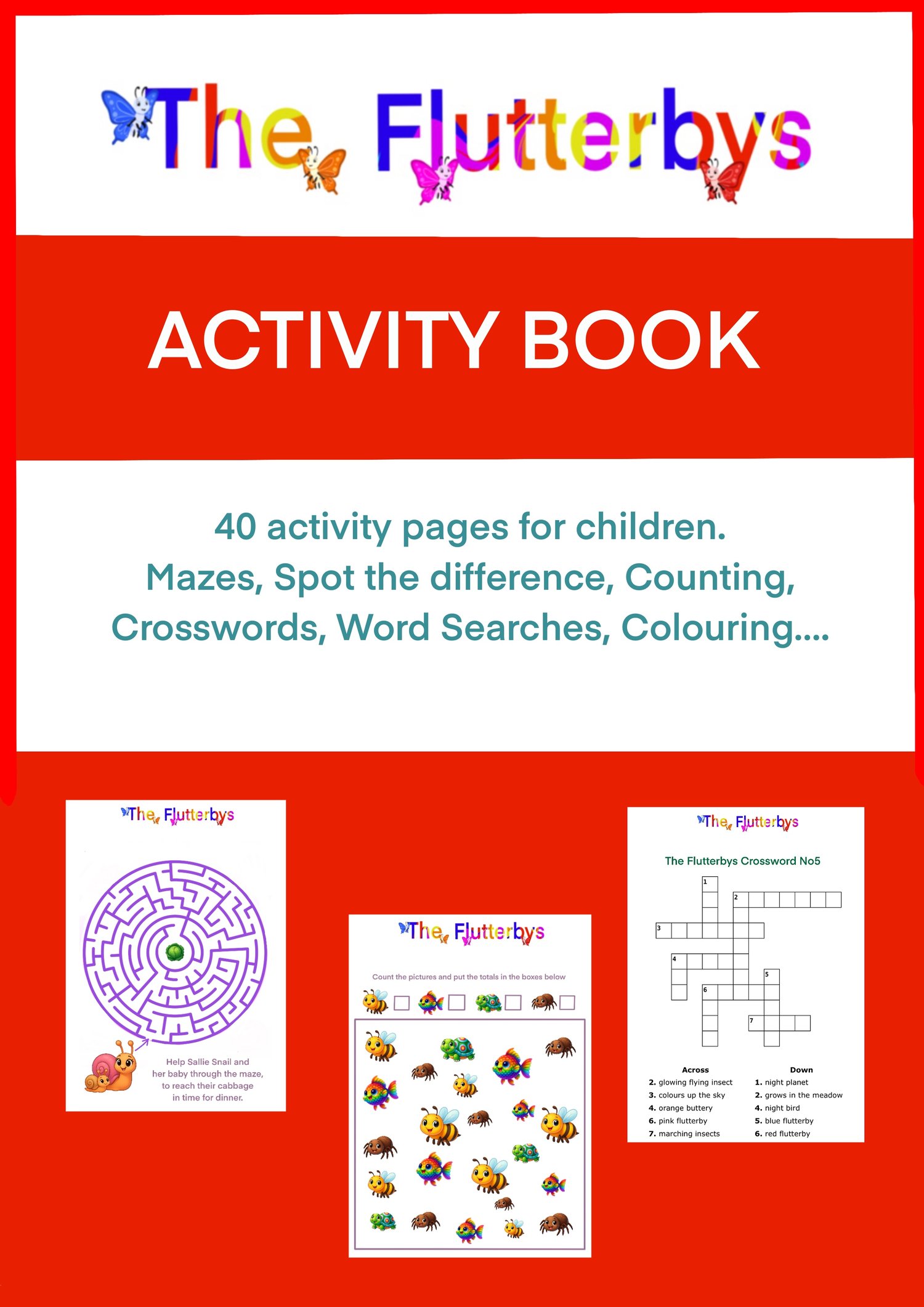 This beautifully designed 40-page activity pack features the adorable Flutterbys characters — Ruby, Rosie, Benny & Ollie — and is perfect for keeping kids entertained at home, on holidays, in classrooms, or during quiet time.