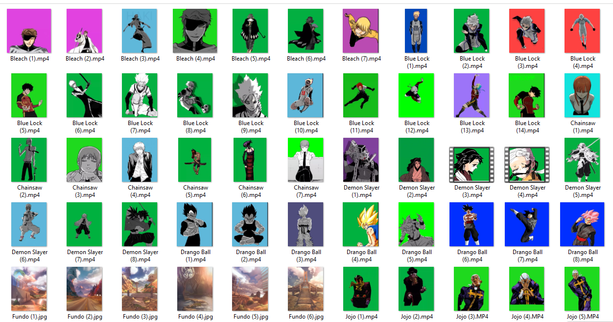 103 Manga Animations with a green background, with Bleach, Blue Lock, Naruto, Jujutsu, One Piece and more...