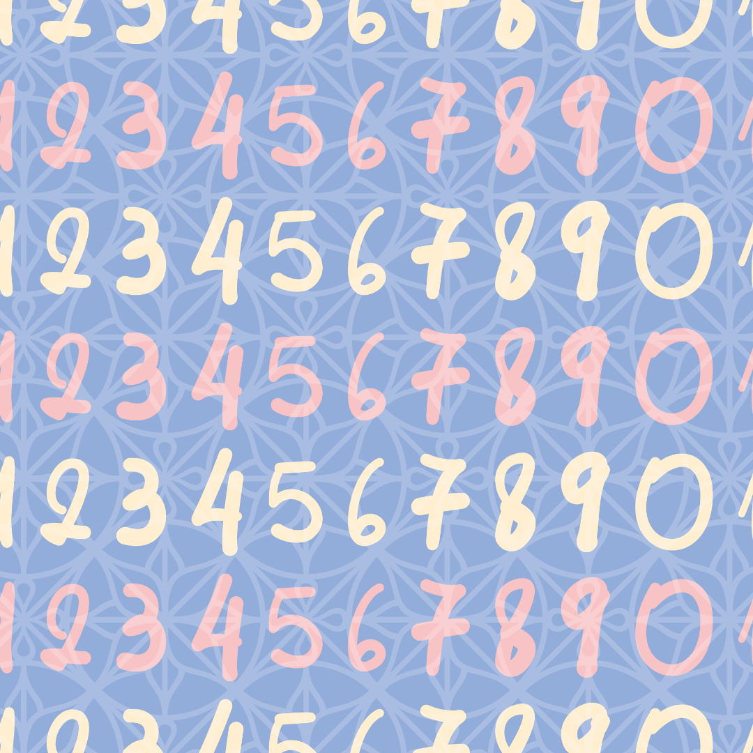 Lettering numbers vector repeat pattern. Hand written digits seamless illustration background.