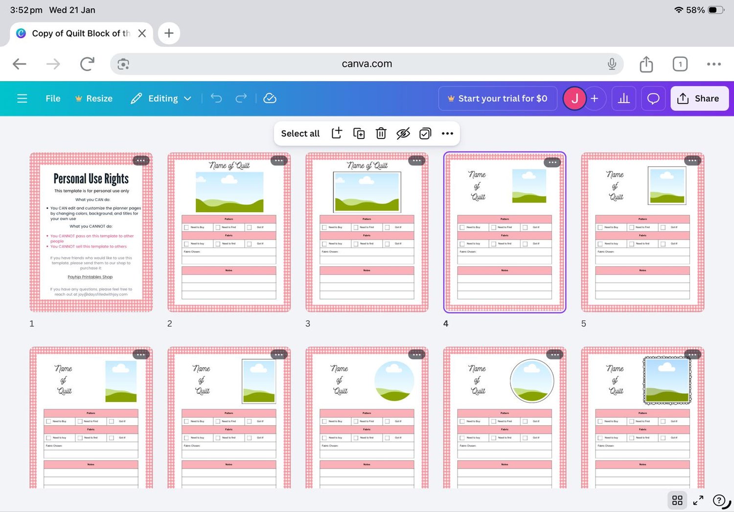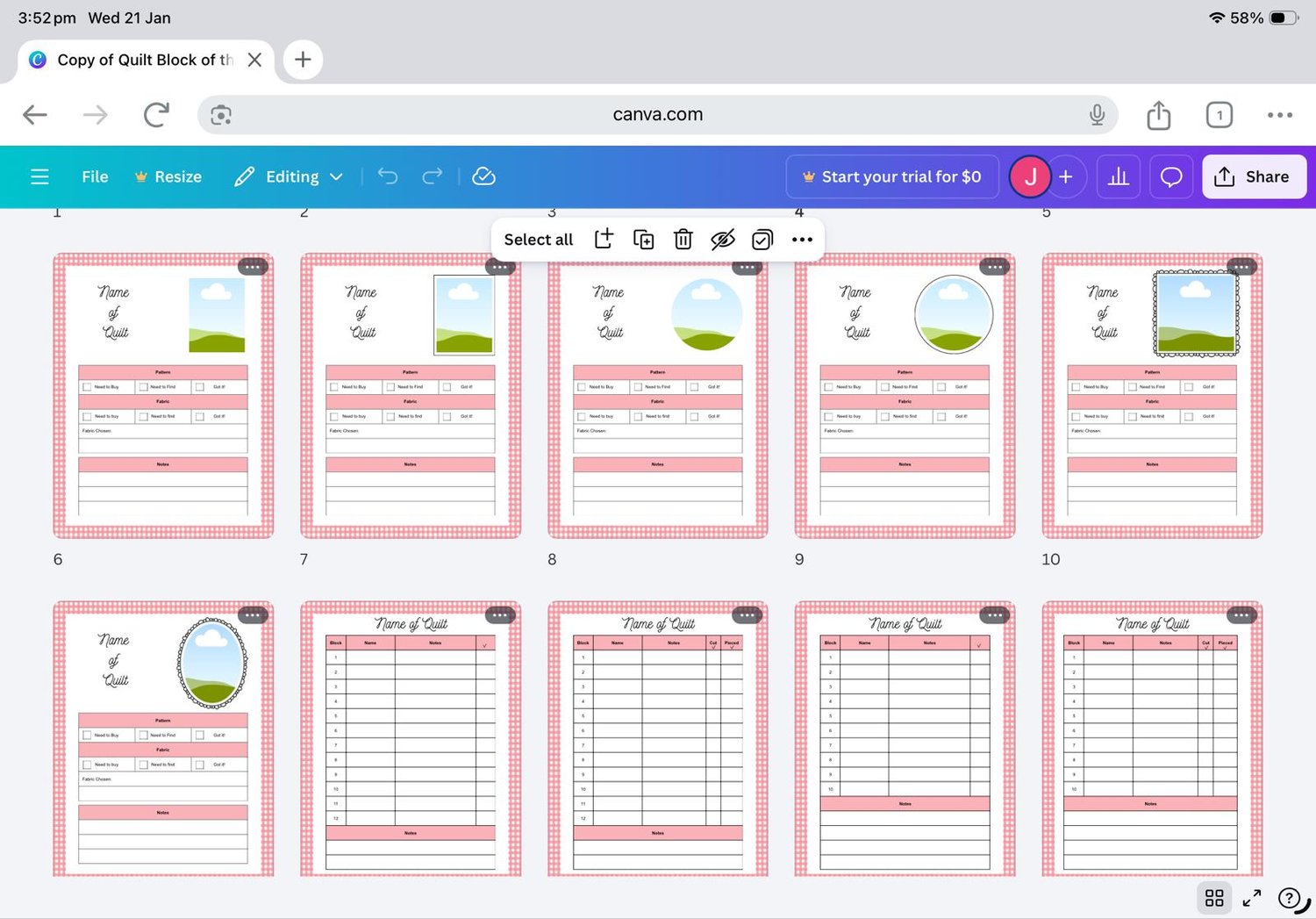 Block of the Month Trackers Canva Template - Editable