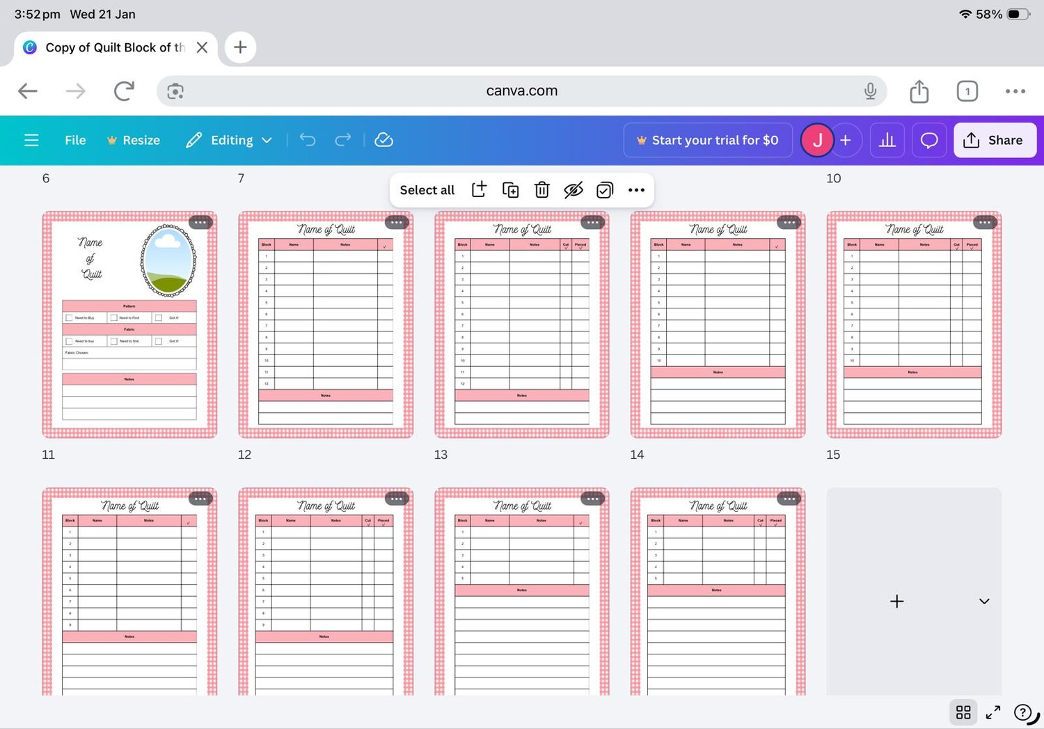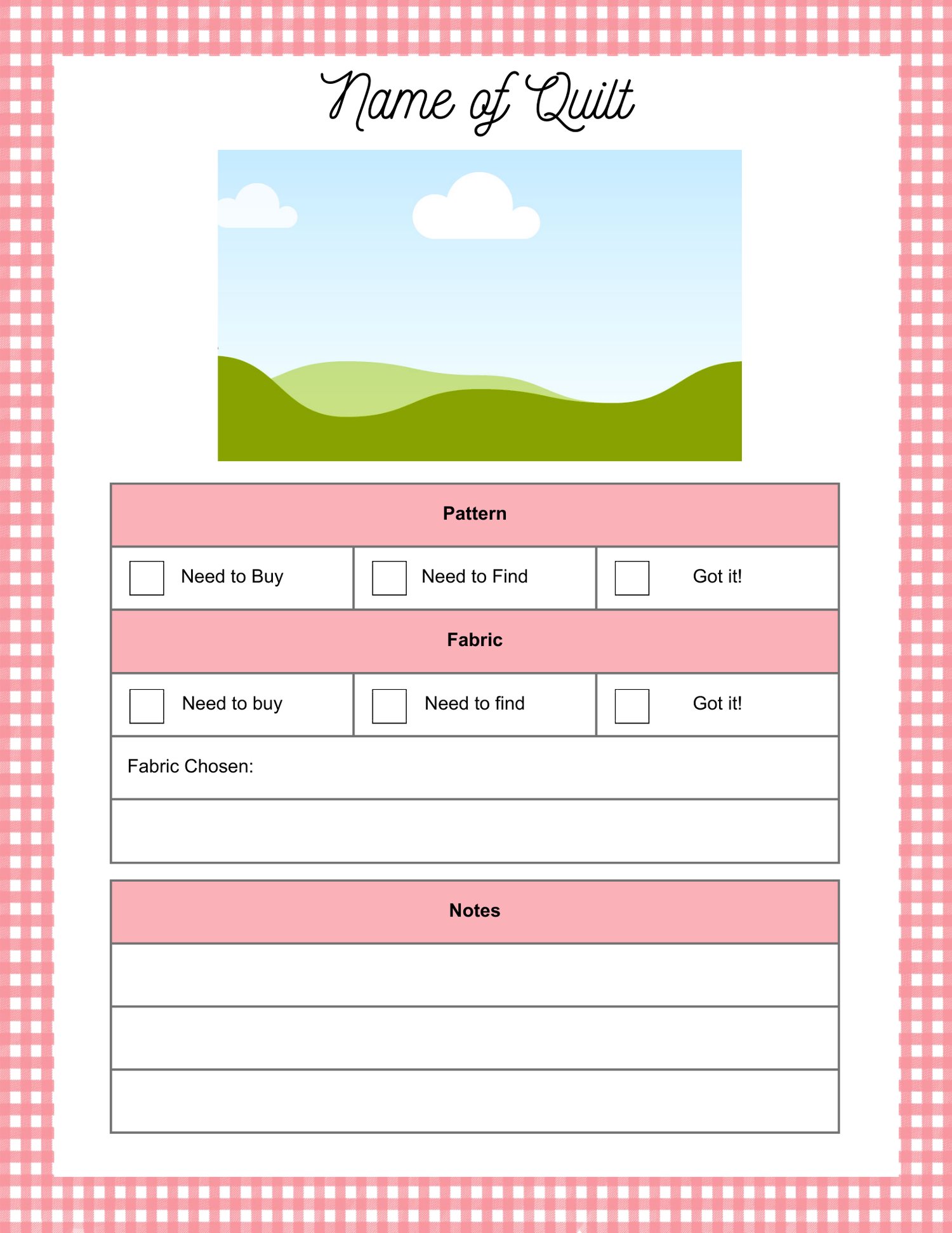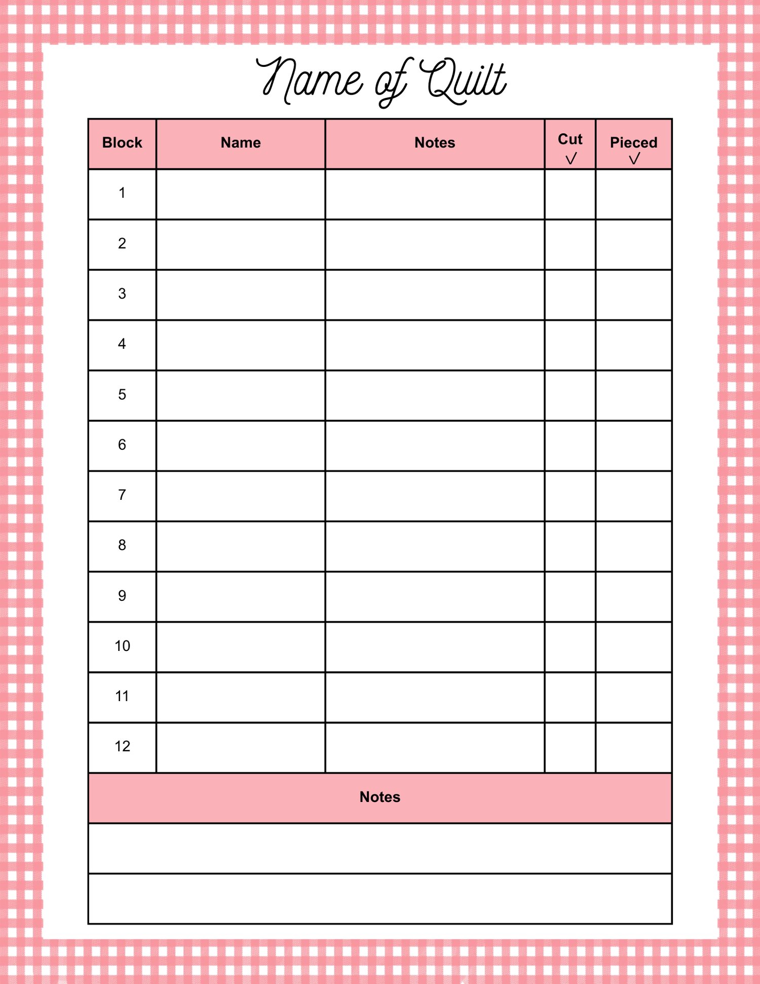 These Quilt BOM tracking pages are completely editable. There are 18 different pages where you can fill in the name of your quilt, the names of the blocks, and any notes you'd like to add.
