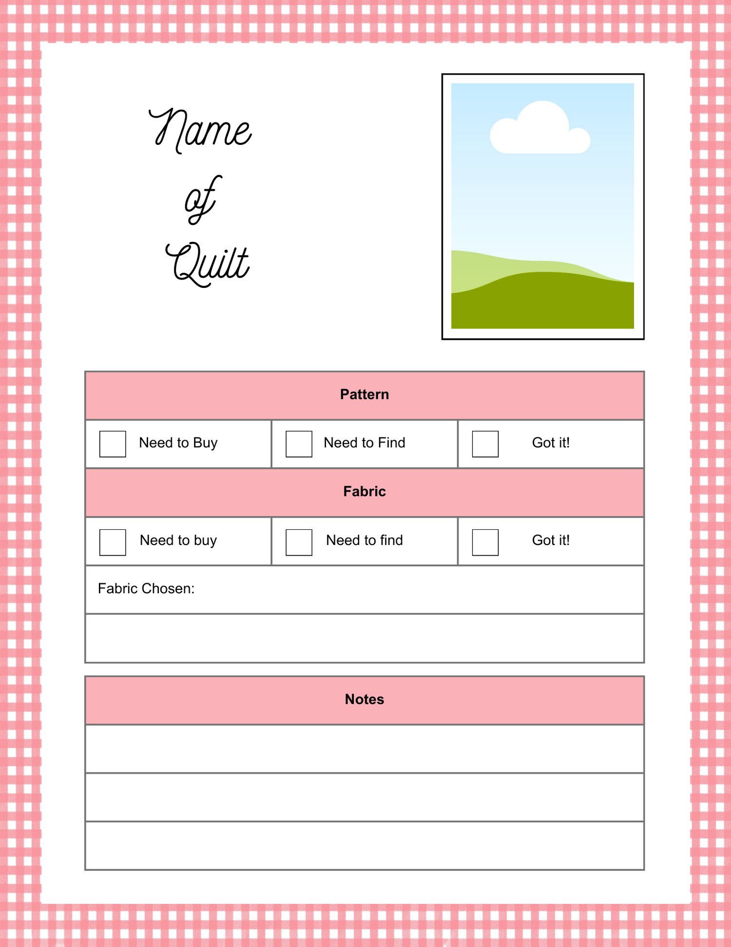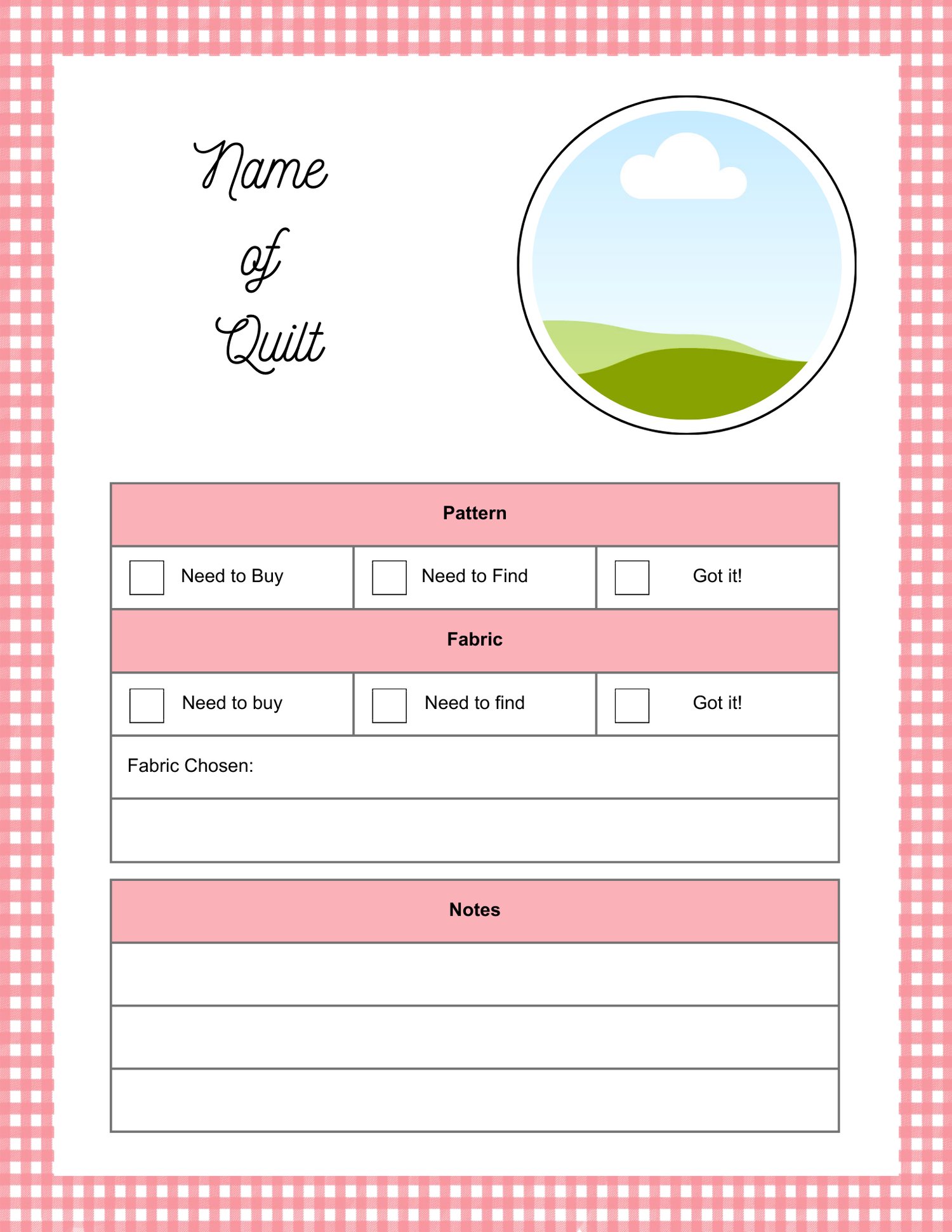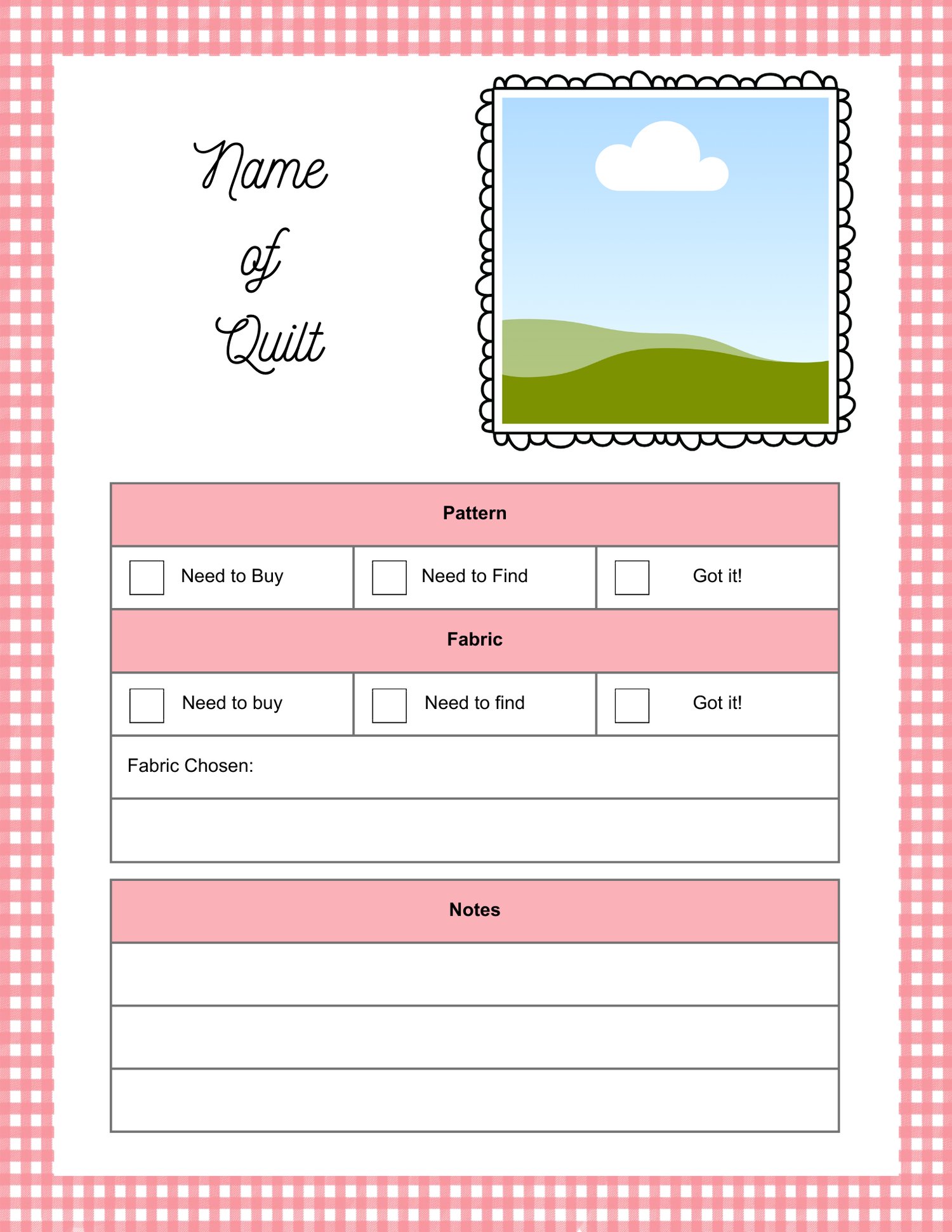These Quilt BOM tracking pages are completely editable. There are 18 different pages where you can fill in the name of your quilt, the names of the blocks, and any notes you'd like to add.