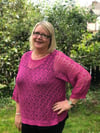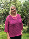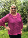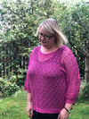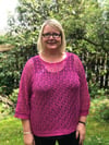 Polzeath is a light and airy sweater knitted in one piece with an all over lace pattern. The sweater is knitted in the round to the underarm. Stitches are cast on for the sleeves and the front and back are knitted separately to the shoulders which are joined with a three needle cast off. This means no sewing up.