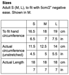 Adult S (M, L), to fit with 6.5cm/2” negative ease.