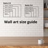 Please see the Wall art size guide in the photo gallery of this product for more information.