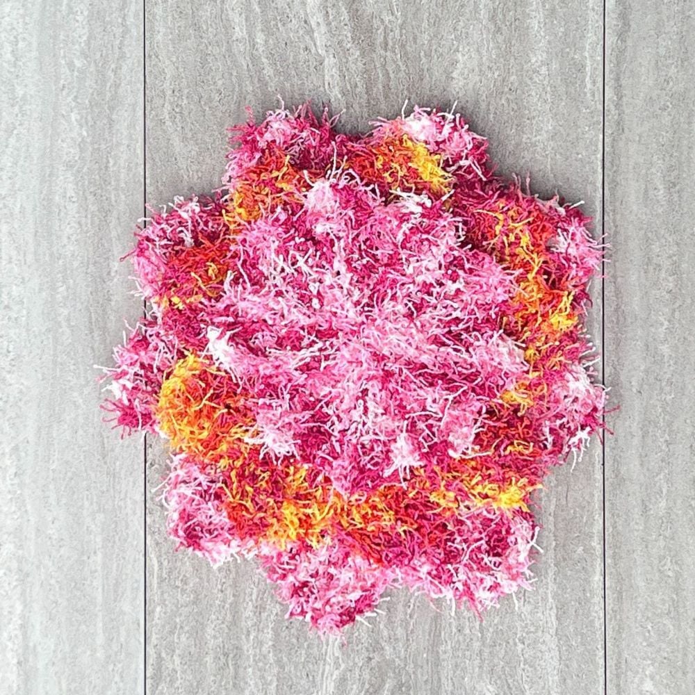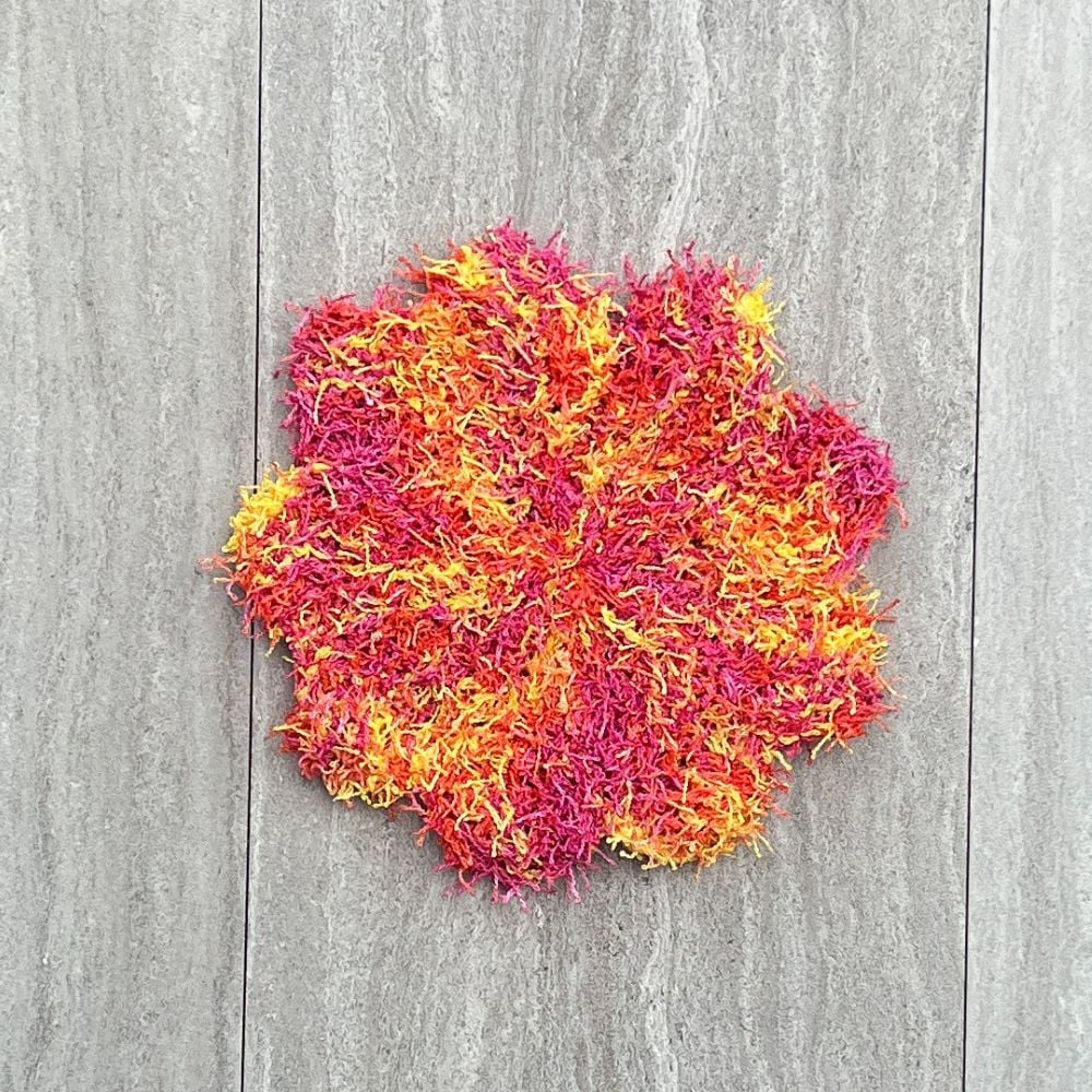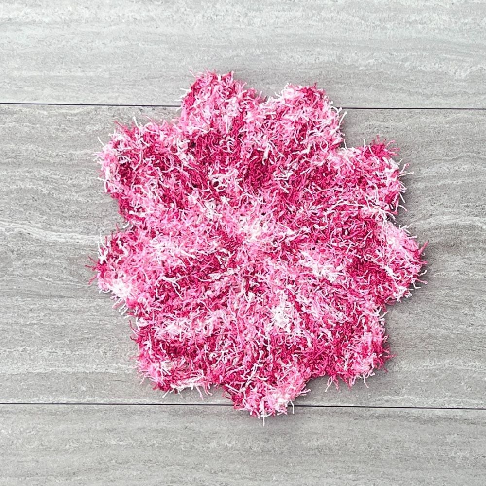 Flower Power Scrub is knit flat using short rows to create each petal of your flower. Once seamed together, your fun Flower Power Scrub is ready to use, gift, or sell at your next craft fair.