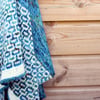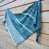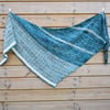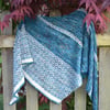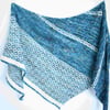 This shawl was inspired by my memories of my scuba diving days and my fascination with watching the silvery bubbles of air rushing to the surface through glorious blue waters. It’s an asymmetric triangle knitted sideways from a few cast on stitches. It is mostly knitted in stocking stitch with rows of slipped stitches to create the pattern and it’s finished with a contrasting i-cord bind off.