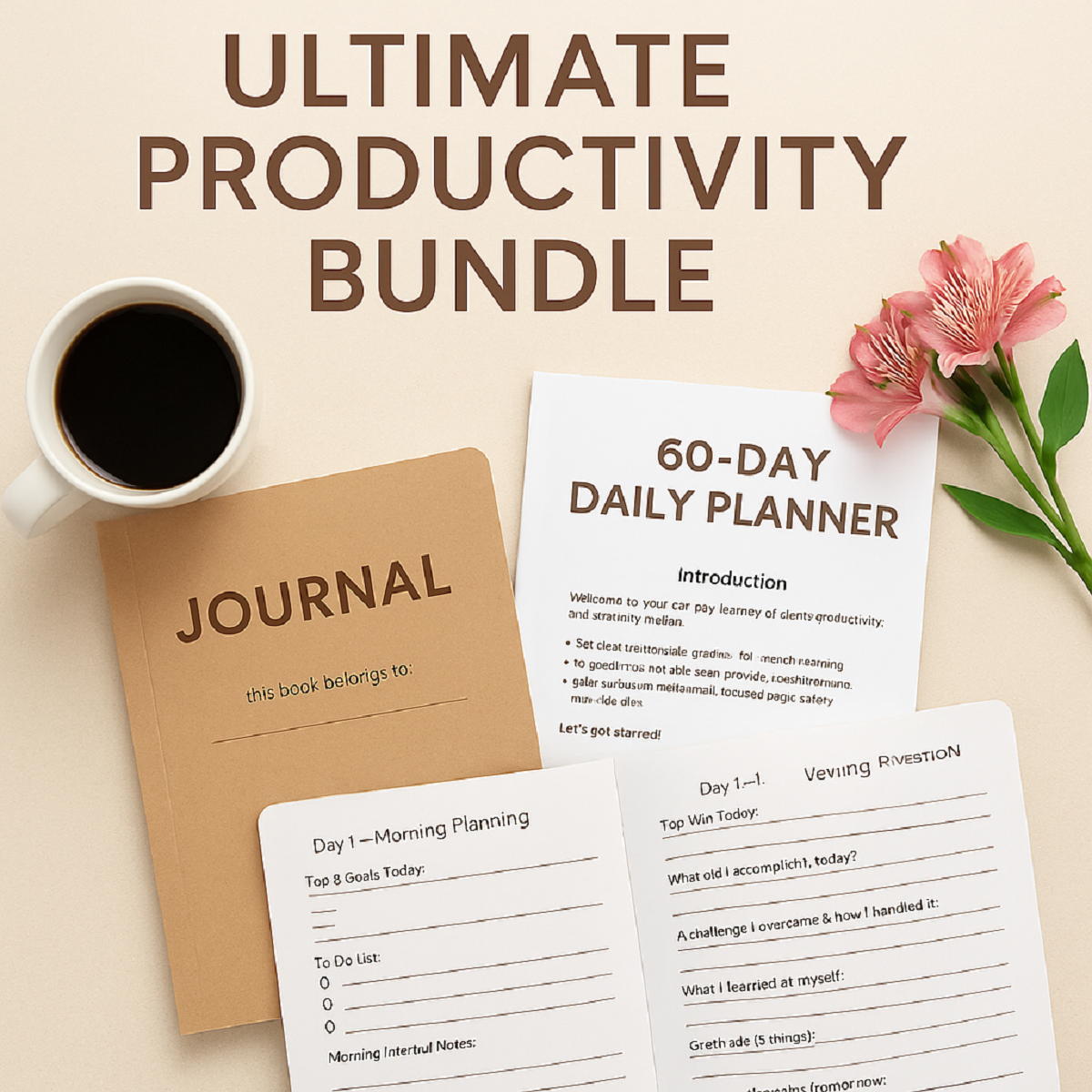 Ultimate Productivity Bundle – 60-Day Planner + Minimalist Journal (Printable PDF)