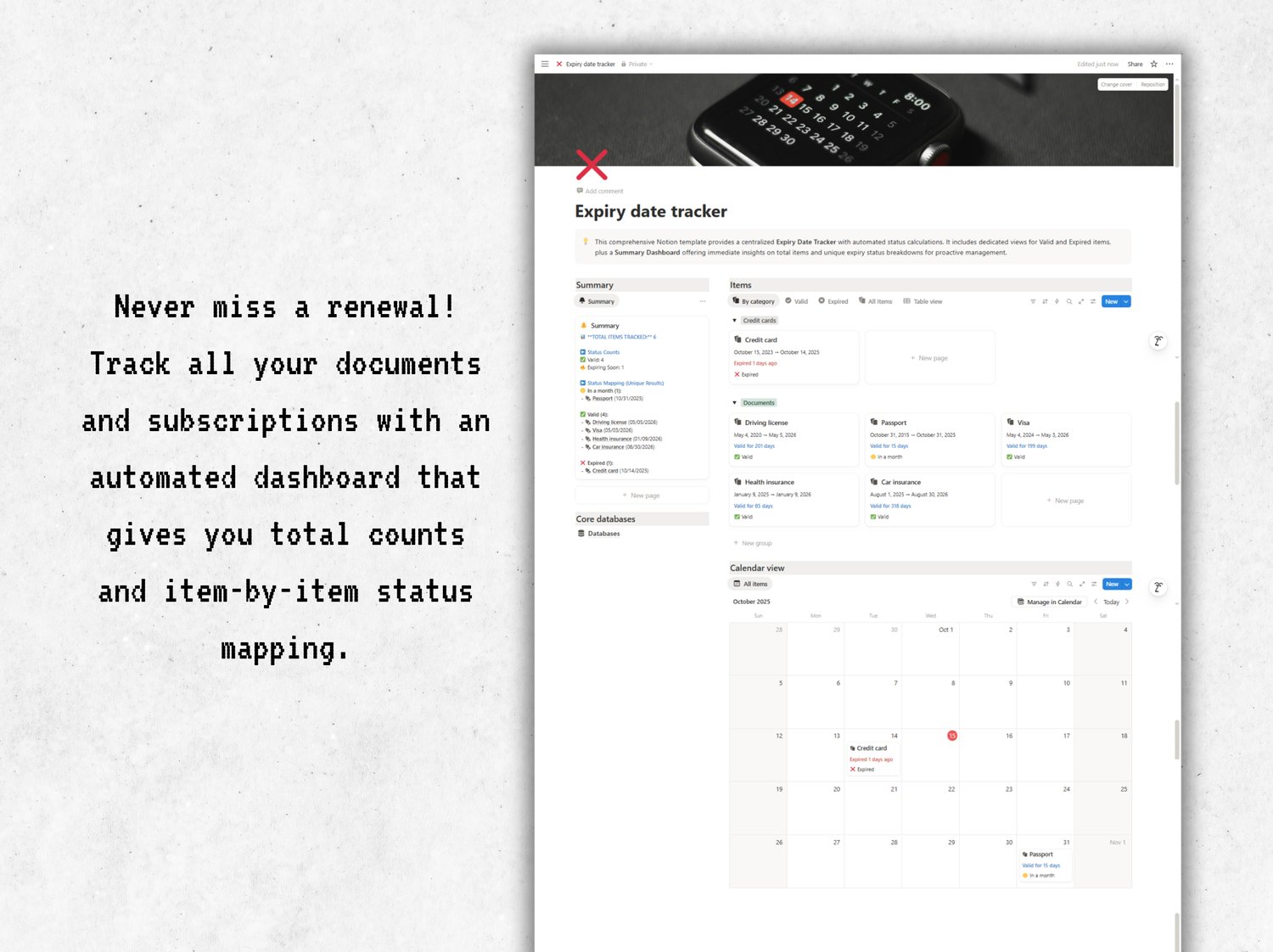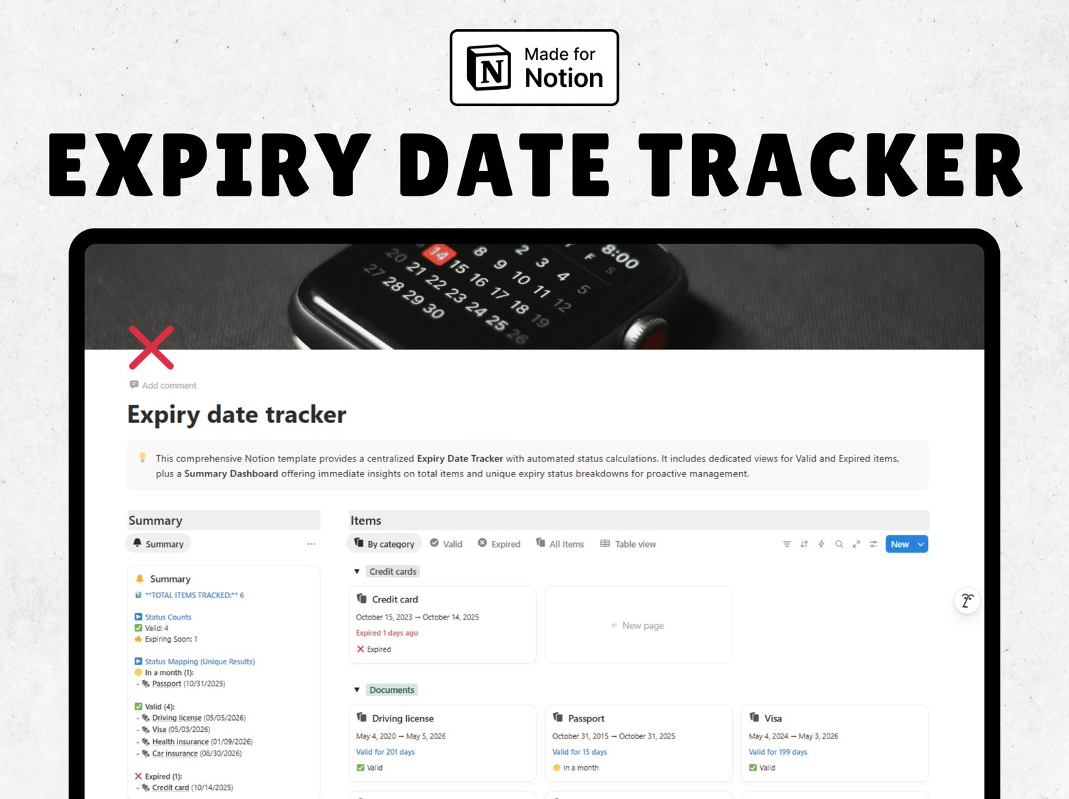 Expiry date tracker - Notion template