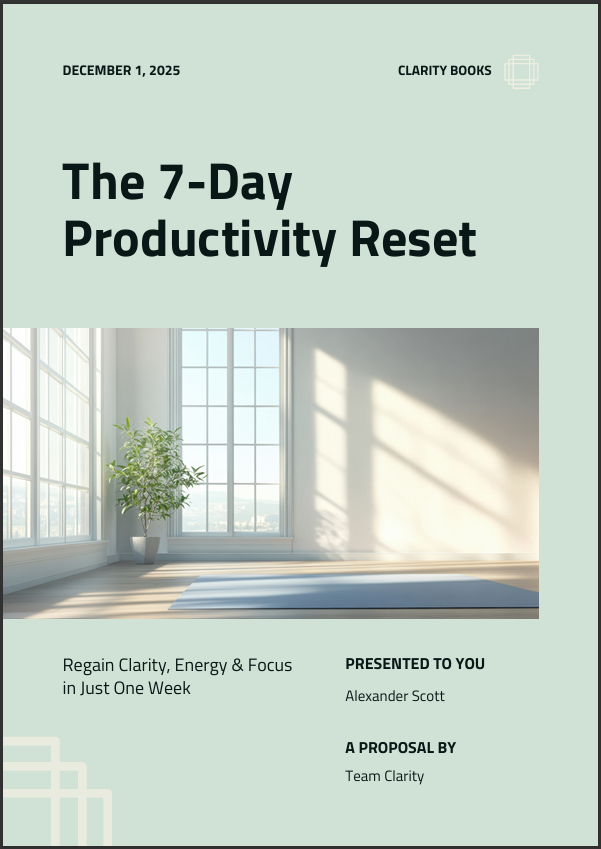 The toolkit is minimal, intentional, and designed to weave easily into your life. By the seventh day, you won’t just be more productive — you’ll feel aligned again.