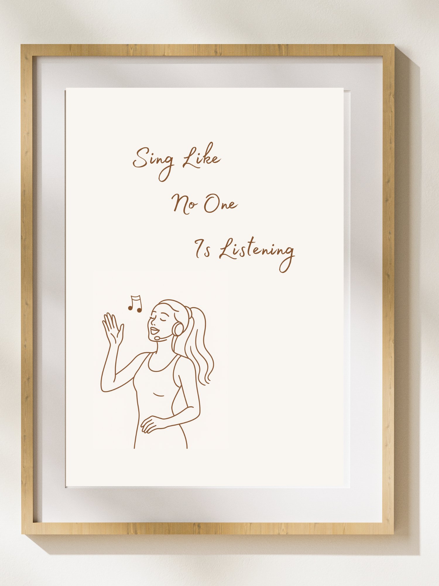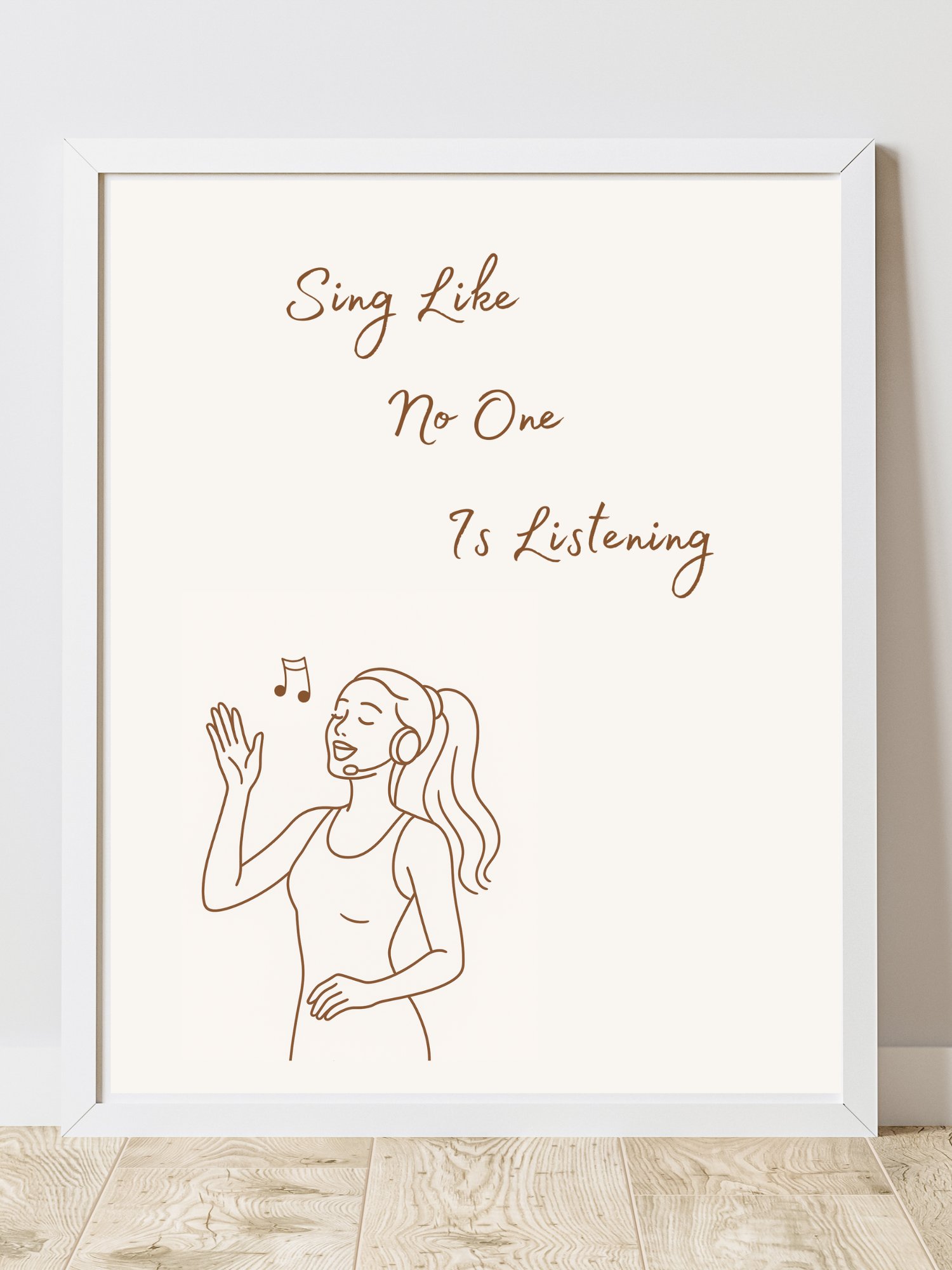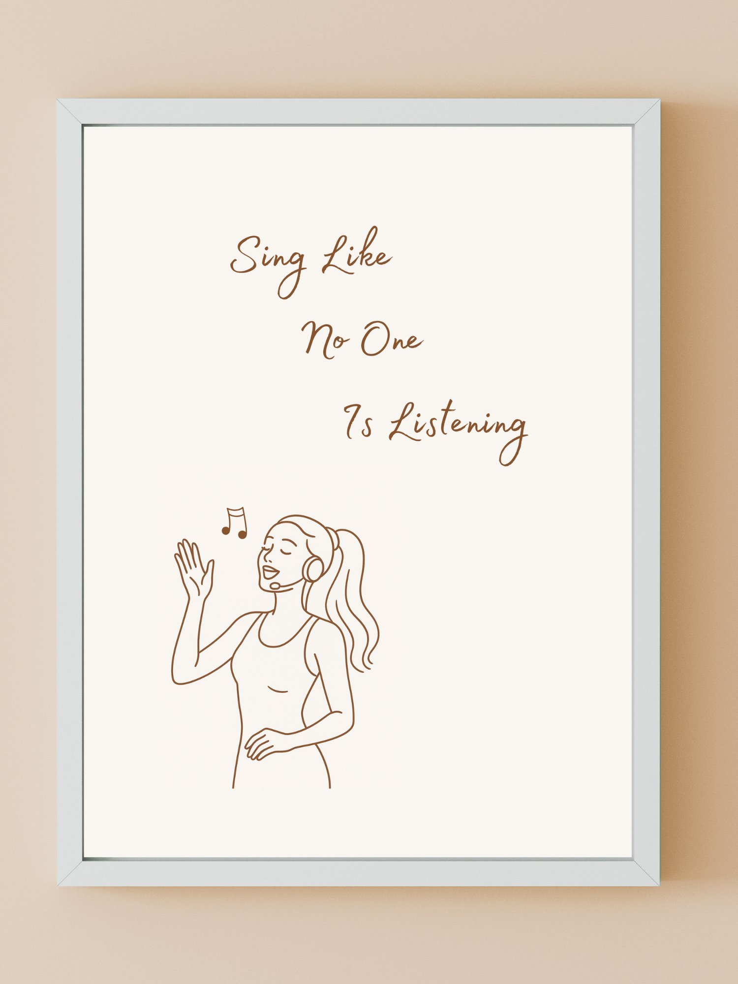 “Sing Like No One Is Listening” Wall Art | Self Care & Self Love Inspirational Poster | Minimalist Digital Download Print for Modern Home Decor