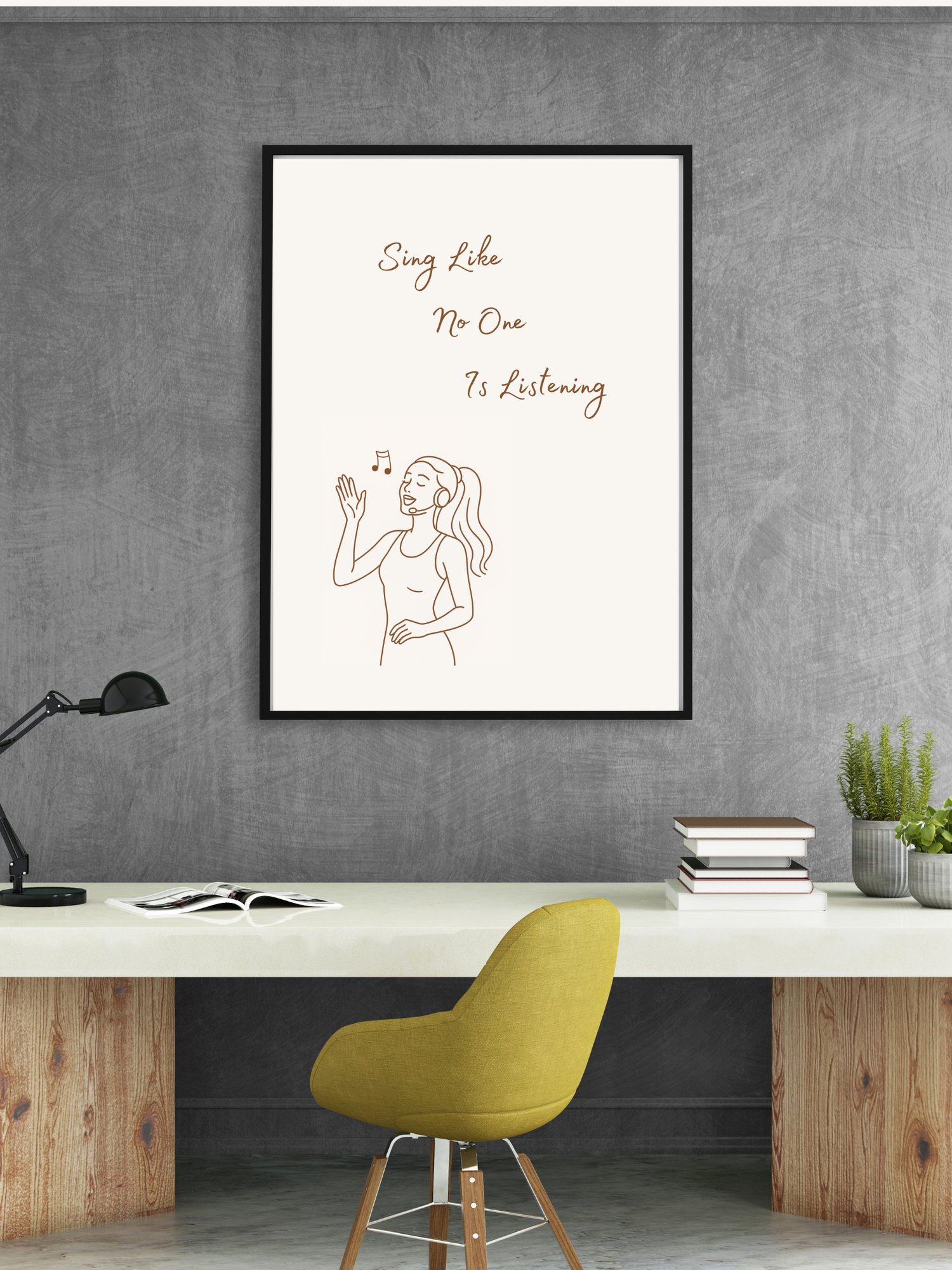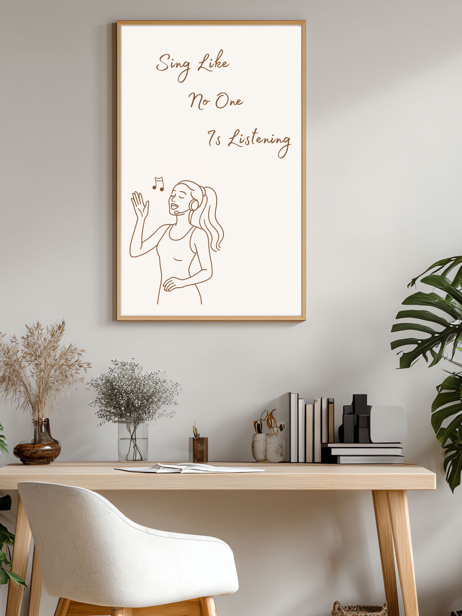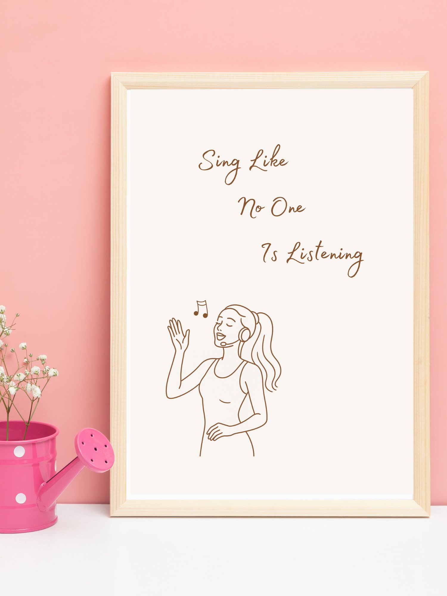 “Sing Like No One Is Listening” Wall Art | Self Care & Self Love Inspirational Poster | Minimalist Digital Download Print for Modern Home Decor