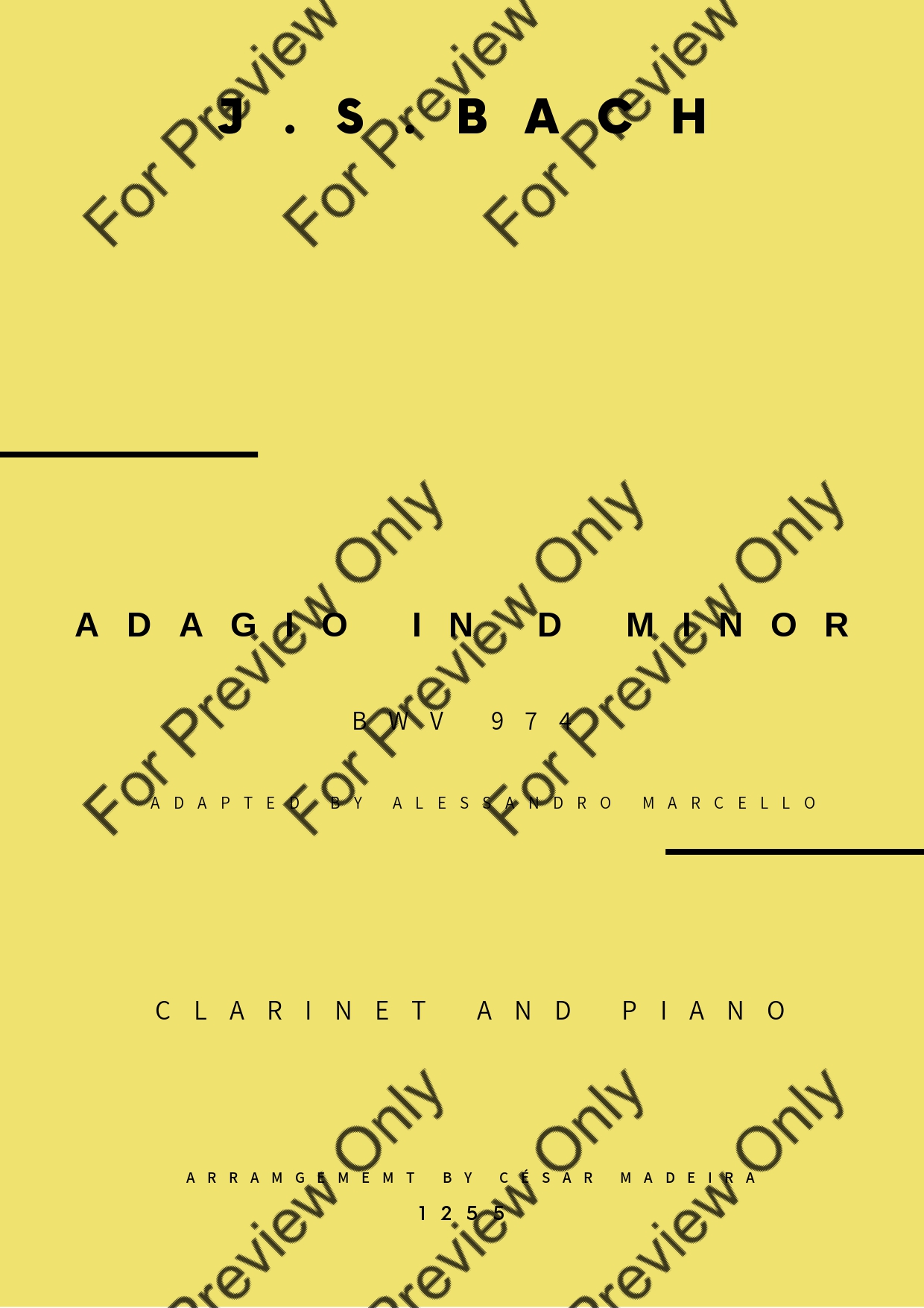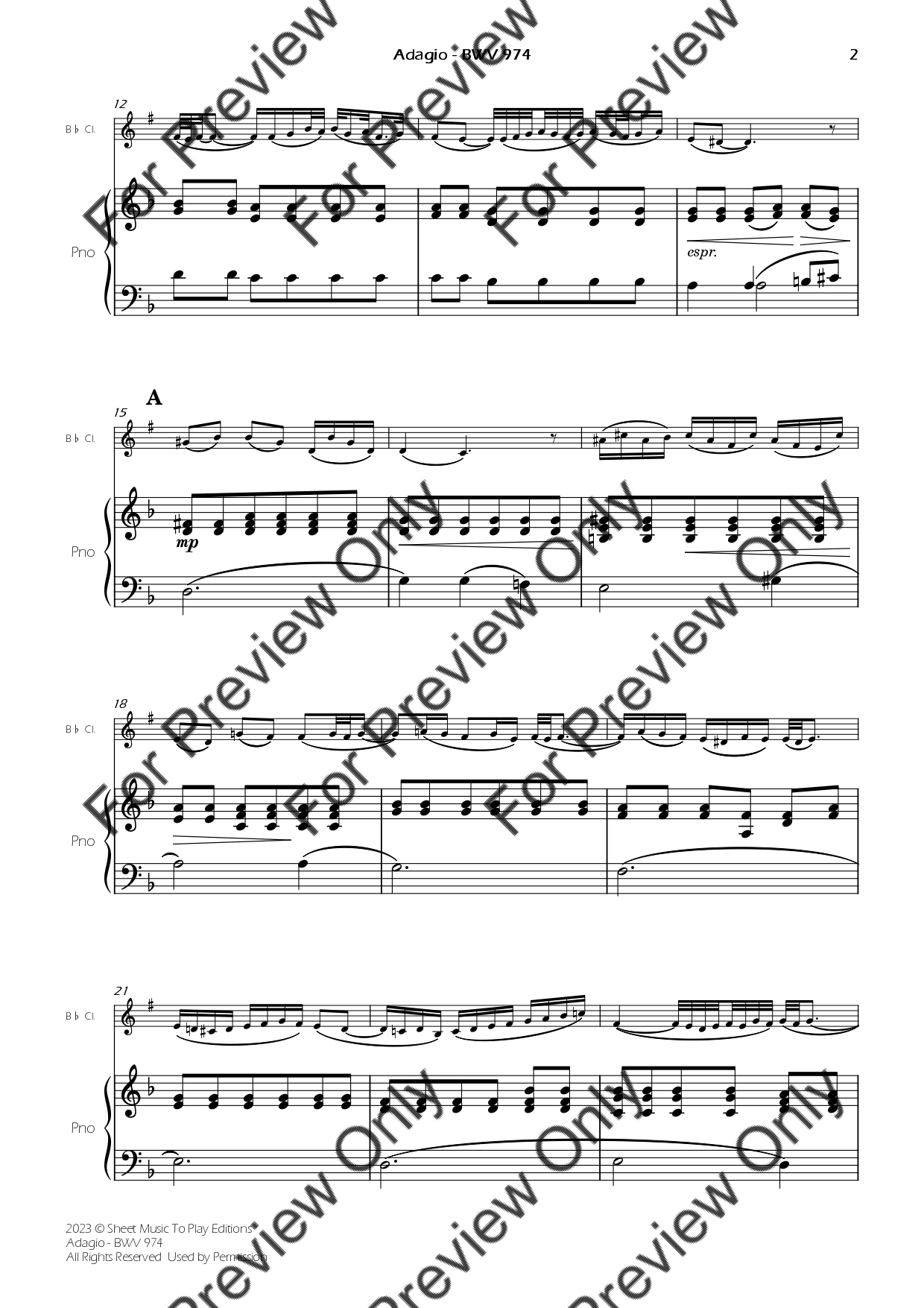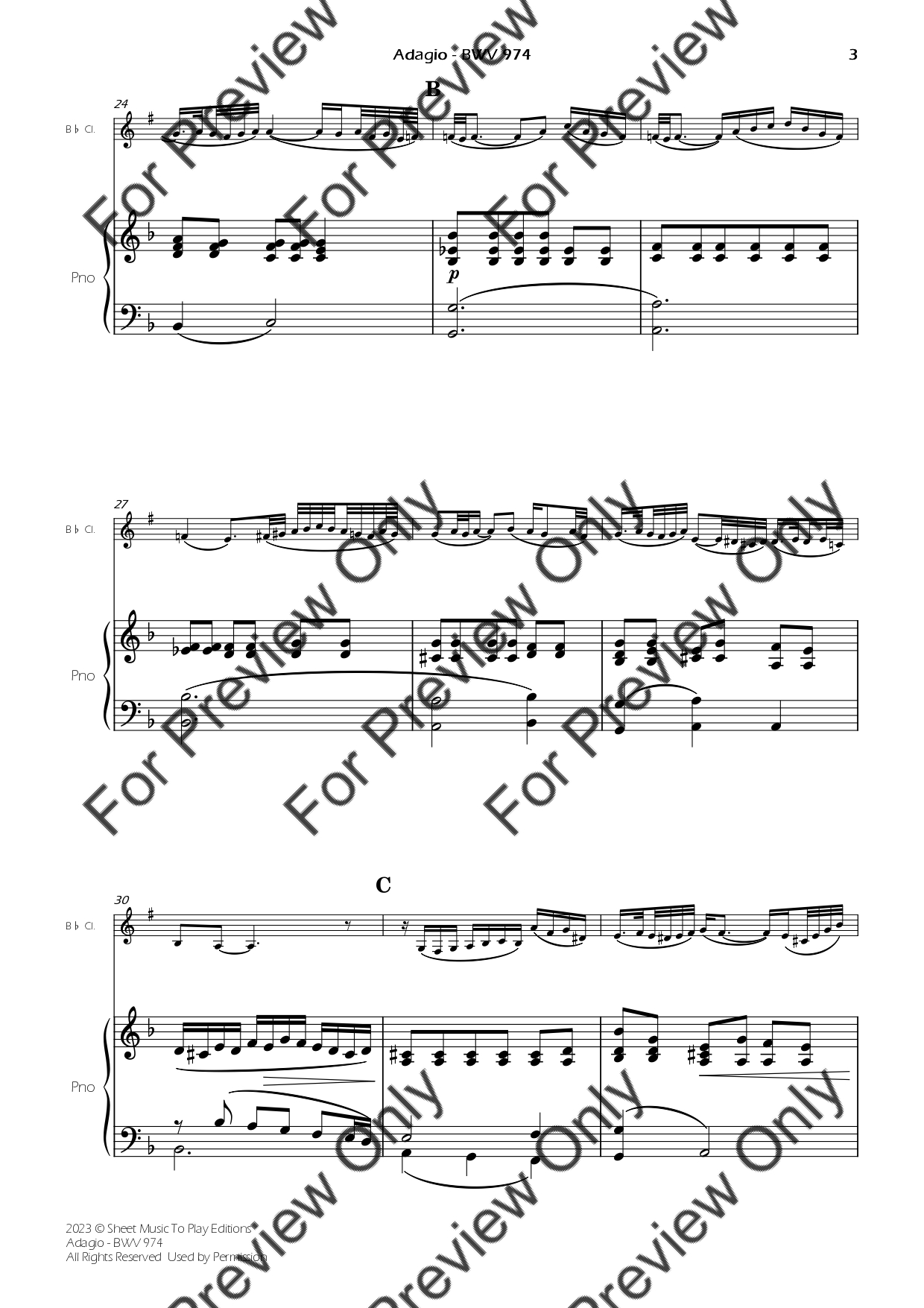 Adagio in D minor, BWV 974 by Johann Sebastian Bach. Arrangement for Bb Clarinet and Piano. With Full Score and Individual Parts. Have fun!