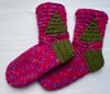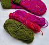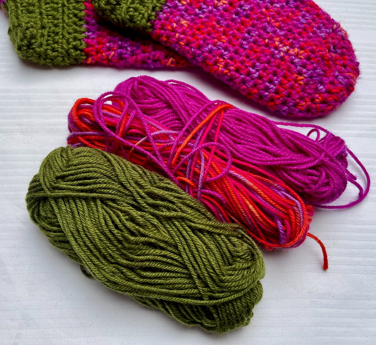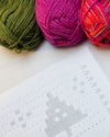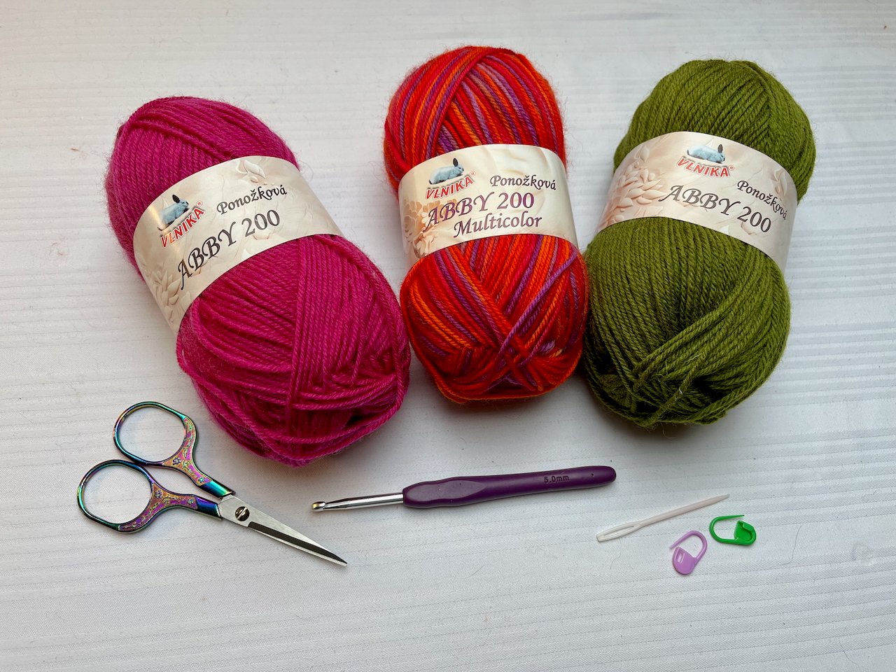 Háčkujeme je s hřejivou přízí Abby 200, která zajistí měkkost a trvanlivost, perfektní pro domácí nošení. Použití tří barevných klubíček (tmavě růžová, zářivá multicolor a zelená pro stromeček) dodá ponožkám neobyčejný, pestrý vzhled.