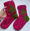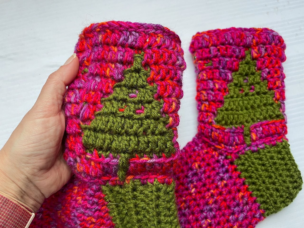 Tyto háčkované Vánoční ponožky se stromečkem a ozdobičkami nejsou jen hřejivým doplňkem pro chladné dny, ale i stylovou, ručně háčkovanou obuví – ideální jako ponožky-bačkůrky! Projekt je ideální pro ty, kteří chtějí ozdobit své nohy vánočním motivem a zároveň se seznámit s technikou mozaikového háčkování.