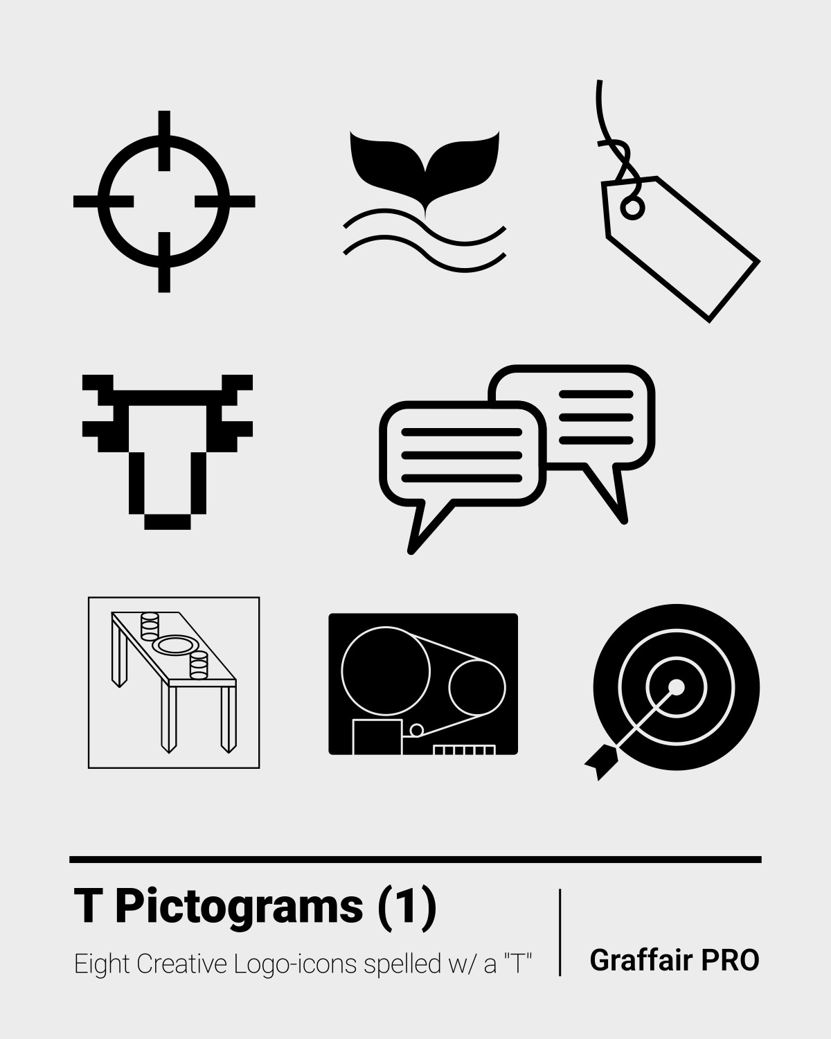 T Pictograms (1): The 1st set of 8 pictograms, each beginning with a "T".