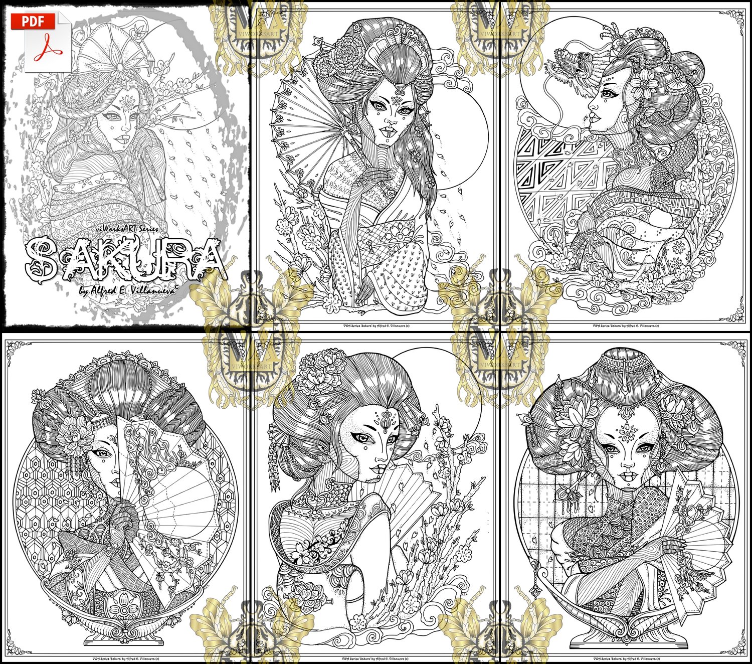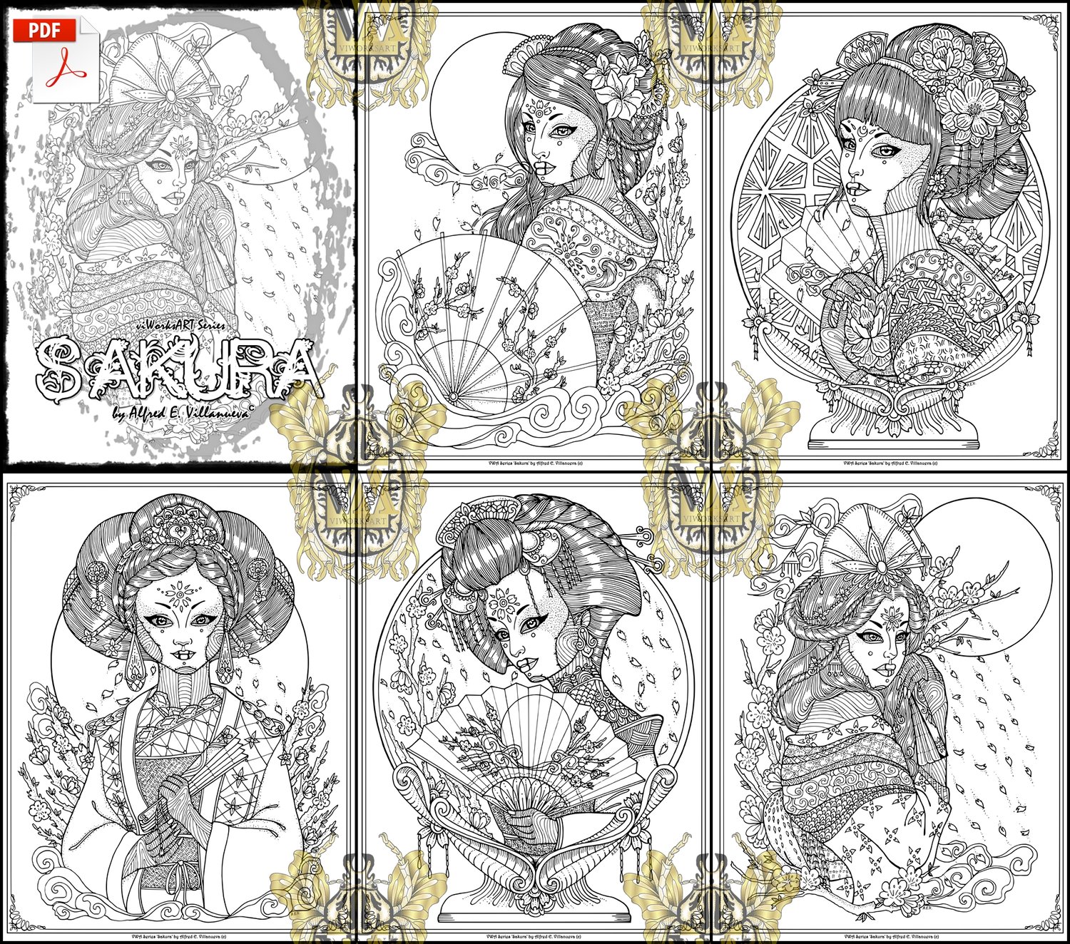 Contains 10 Coloring Illustrations + 10 Coloring Illustration Bookmarks of each illustrations (300 dpi)