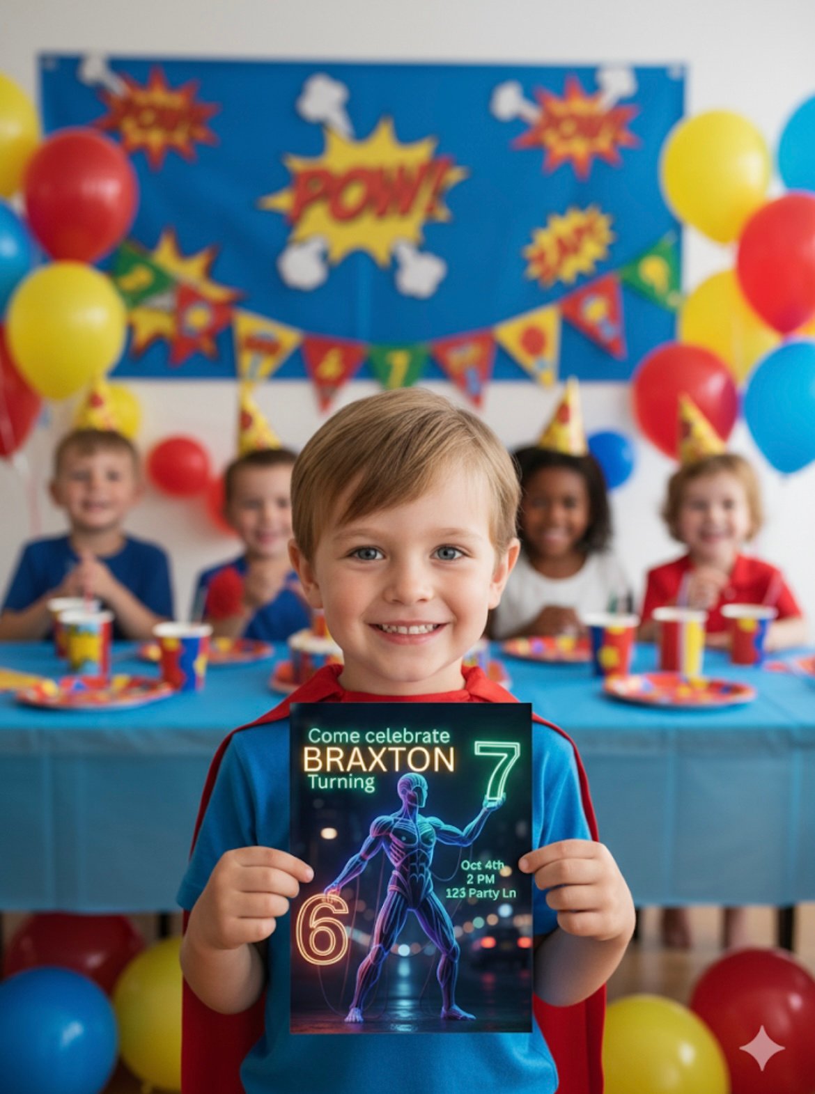 Customizable Superhero Birthday Invitation - Digital Card for 6 or 7