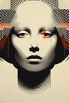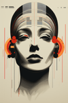 This mesmerizing piece juxtaposes classic beauty with intricate digital details. The stark contrast of the monochrome face and the bold orange accents make this artwork perfect for evoking themes of technology blending with humanity - Serie of 3 Pictures is ideal for Canva, Posters, and POD Products.