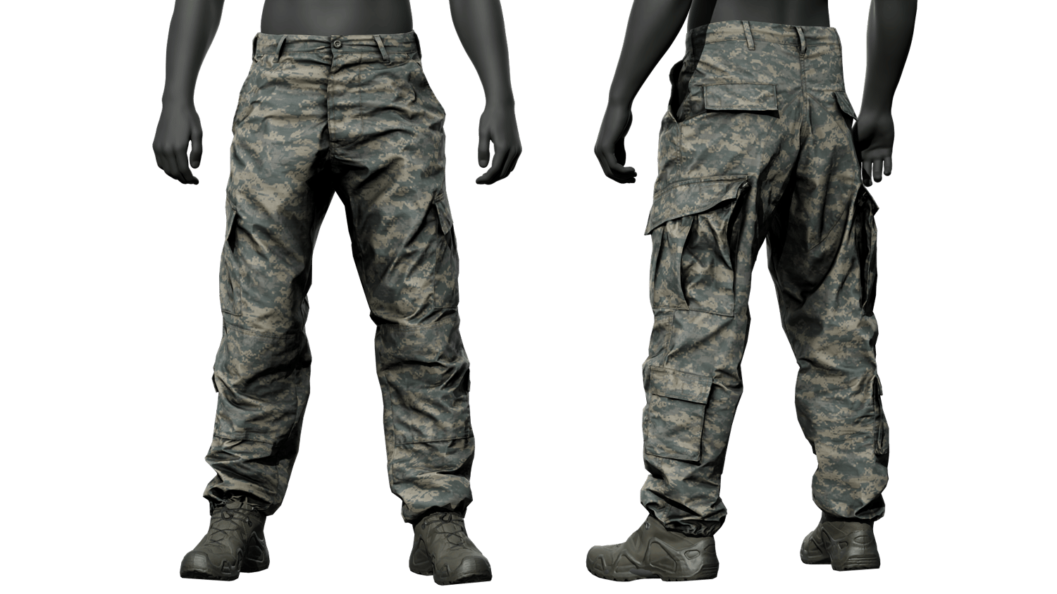 Game-ready 3D model of the ACU (Army Combat Uniform). The uniform comes with a rolled sleeve variant. Great for games such as Arma 3, DayZ, Reforger, Ready or Not, Escape From Tarkov etc. This model was made with care and with easy rigging in mind demonstrated by the grid-like topology.