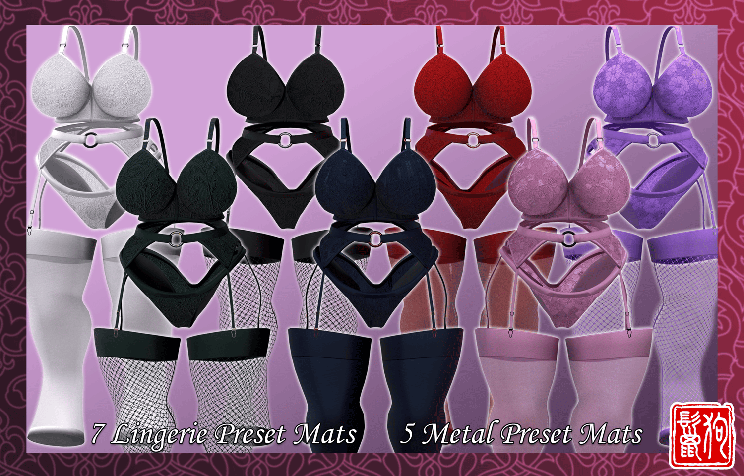 - The Unity Package comes with 7 Lingerie preset materials and 5 metal materials for you to mix and match!