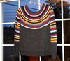 Color Bliss is a great stash-buster, worked top-down with a seamless construction. Color is its defining element: beautiful, happy, joyful color. Use the suggested colors, choose your own favorites, or raid your stash to make this fun and comfortable pullover with plenty of stripes, blocks of color, and a rolled neckline.