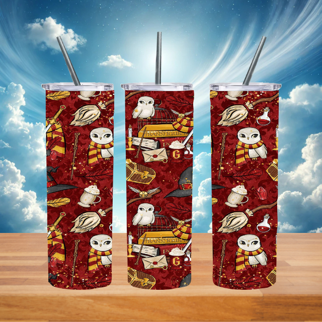 - Durable Sublimation Print: The rich red and gold design, detailed phoenix, and magical accessories are permanently infused onto the tumbler for a long-lasting, fade-proof finish.