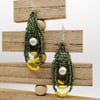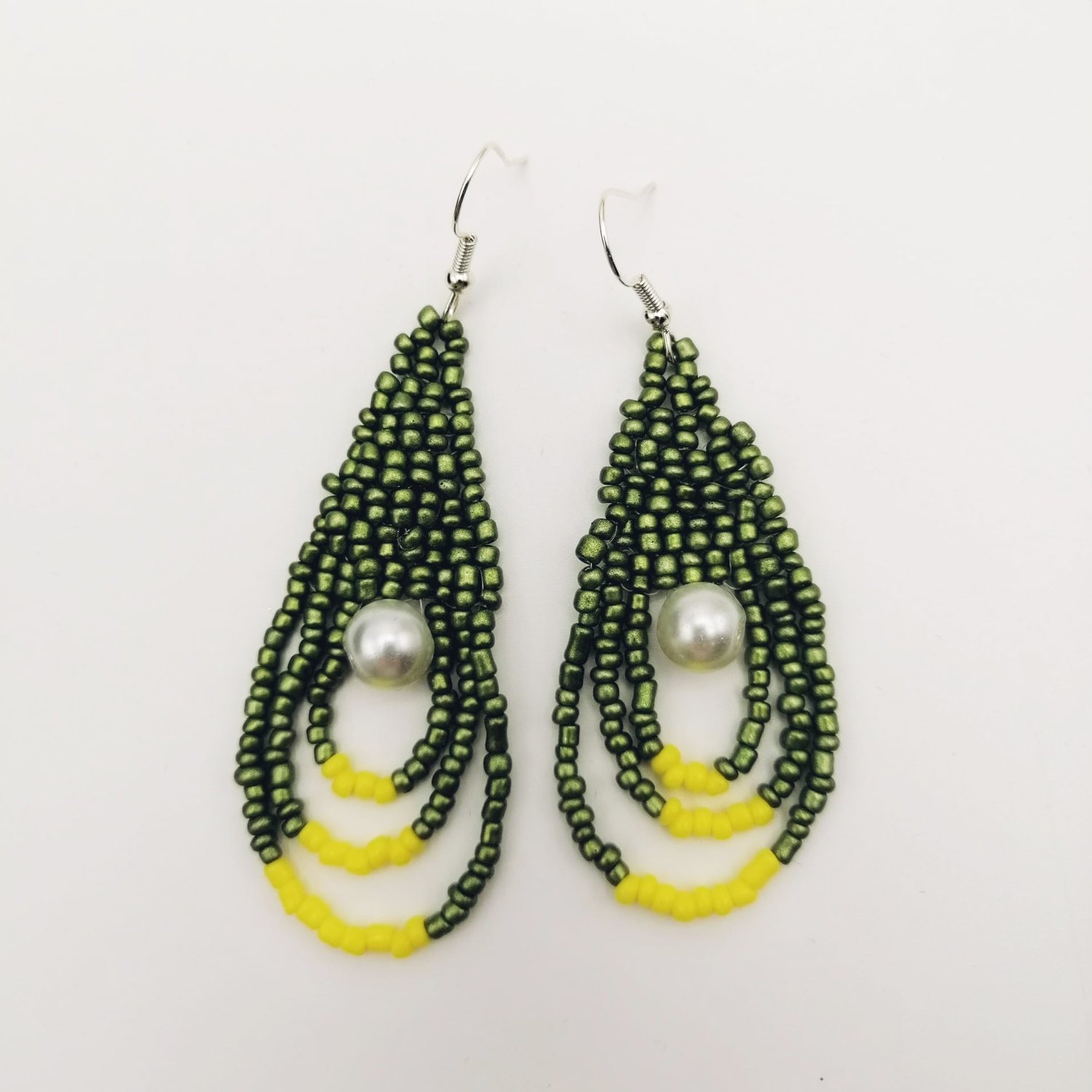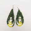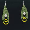 Cercei tip lacrima, din margele fine verzi si galbene cu perla alba