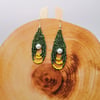 Acești cercei handmade sunt creații unice, atent lucrate din margele fine de nisip, oferindu-le un aspect distinct și elegant. Designul lor imbină armonios nuanțe de verde, galben si si o perla alba lucioasa din plastic, creand astfel o paletă vibrantă și eleganta. Cerceii sunt susținuți de tortițe argintii, adăugand un touch sofisticat și rafinat intregii piese. Cu această bijuterie, veți aduce cu siguranță un strop de culoare și originalitate oricărei ținute, subliniind stilul dumneavoastră distinct și aprecierea pentru creații handmade de calitate.
