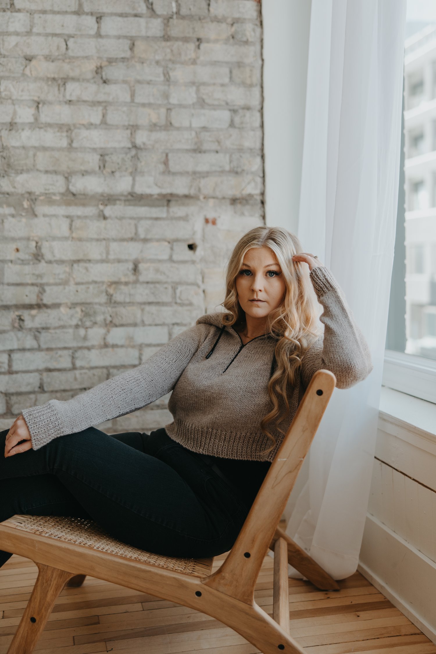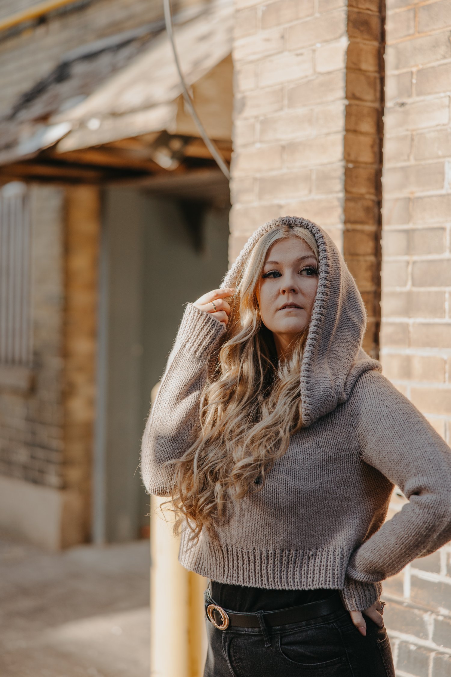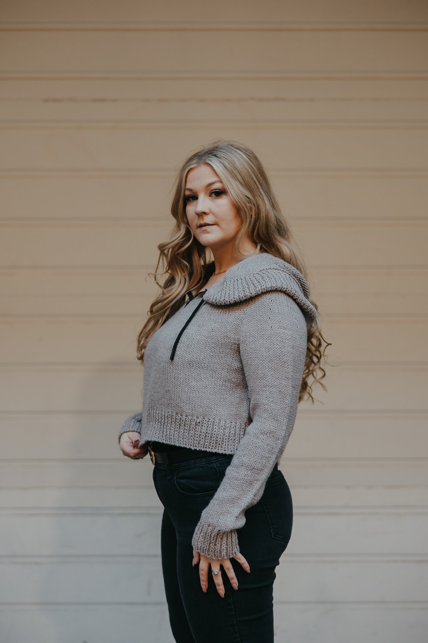 The Optic Hoodie is a comfortable sweater with an oversized body, oversized hood, close fitting sleeve, and cute 1x1 slipped rib stitch details. The slipped rib stitch allows for a sleek hem, wristbands, and hood detail - no pesky tension issues that usually pop up with a classic 1x1 rib stitch! This pattern is packed full of helpful tips and modification suggestions - you can truly make this sweater your own!