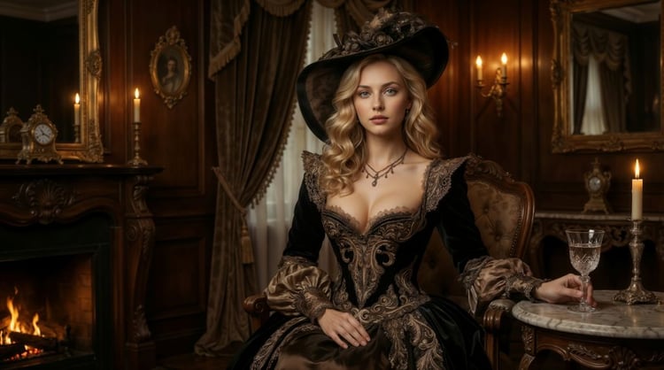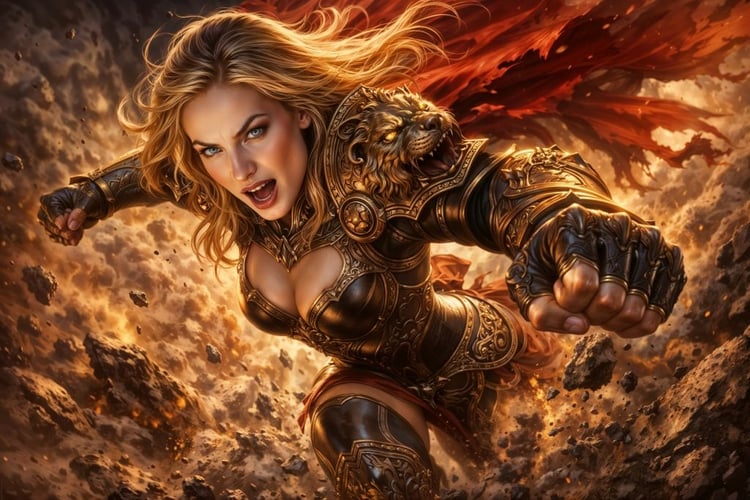Rendered in extraordinary detail—from the polished engravings on her armor to the warm glow of candlelit stone—this artwork captures the quiet intensity of a warrior at rest… yet never unready.