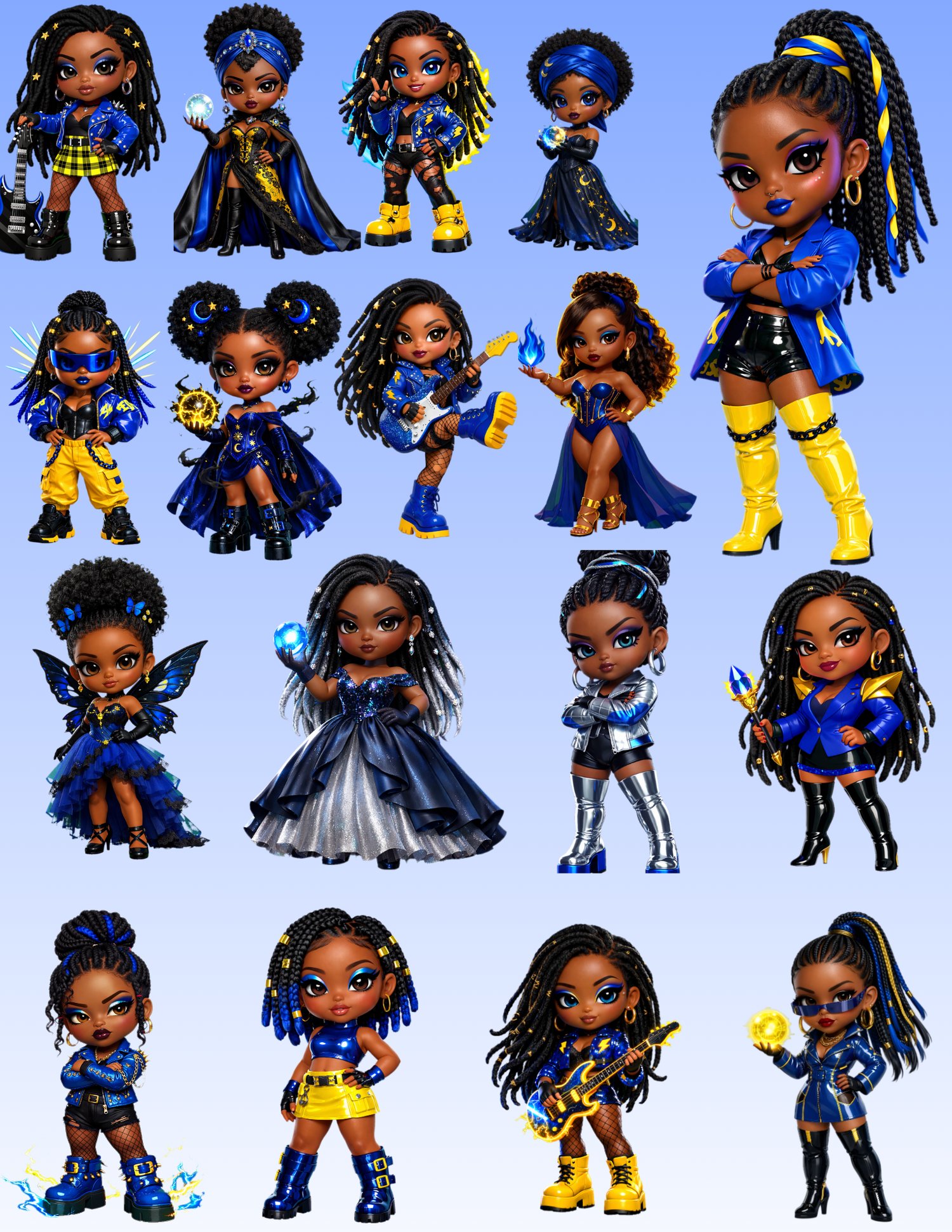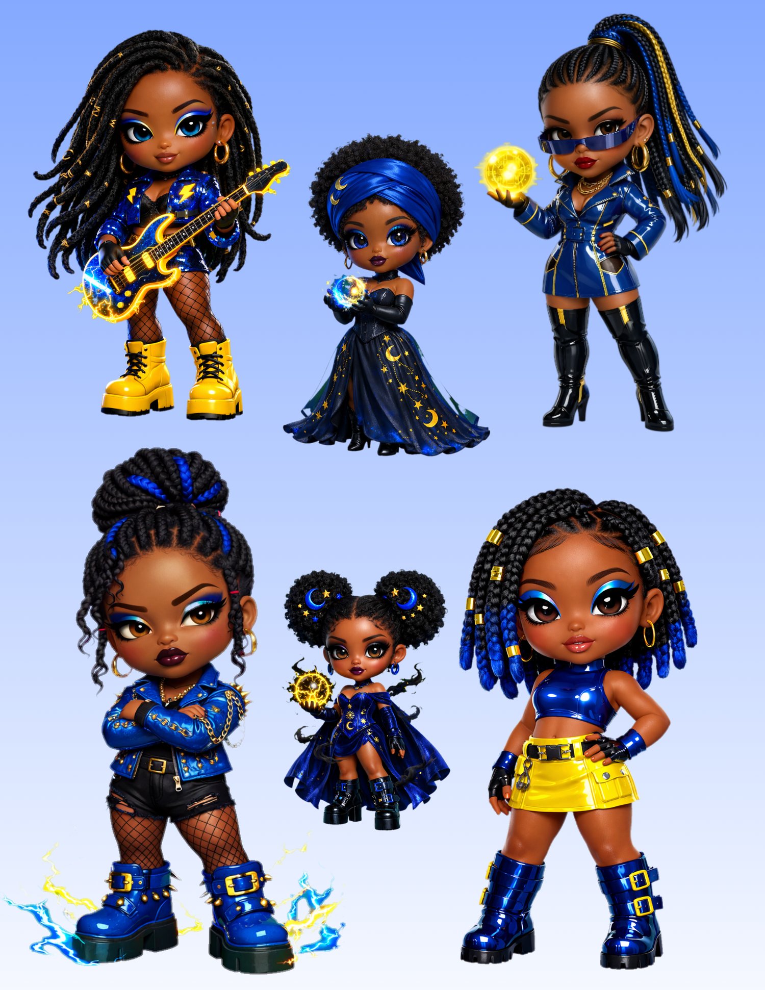 [EXCLUSIVE 1-OF-1] Electric Royal Mega Bundle | 17 Premium Afrocentric 3D Characters | Single-Sale Commercial License | Royal Blue, Gold & Silver Rockstar & Magic Aesthetic