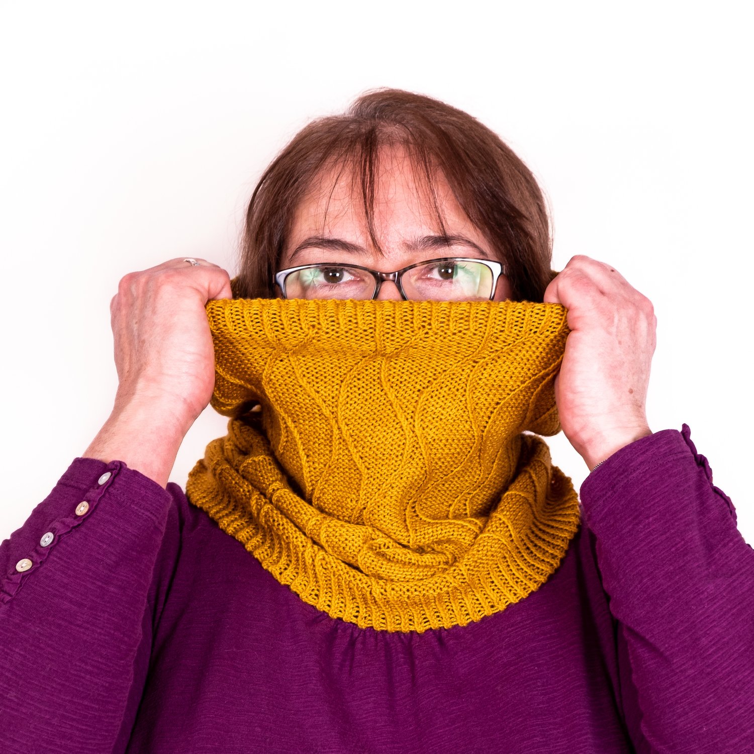This cowl is knitted in the round using knitting through the back loop and simple two-stitch cables to create the waveform pattern.