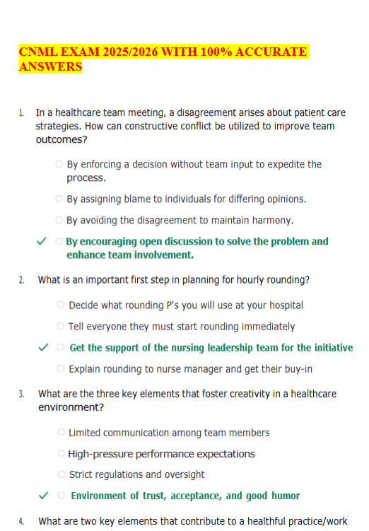 CNML EXAM 2025/2026 WITH 100% ACCURATE ANSWERS