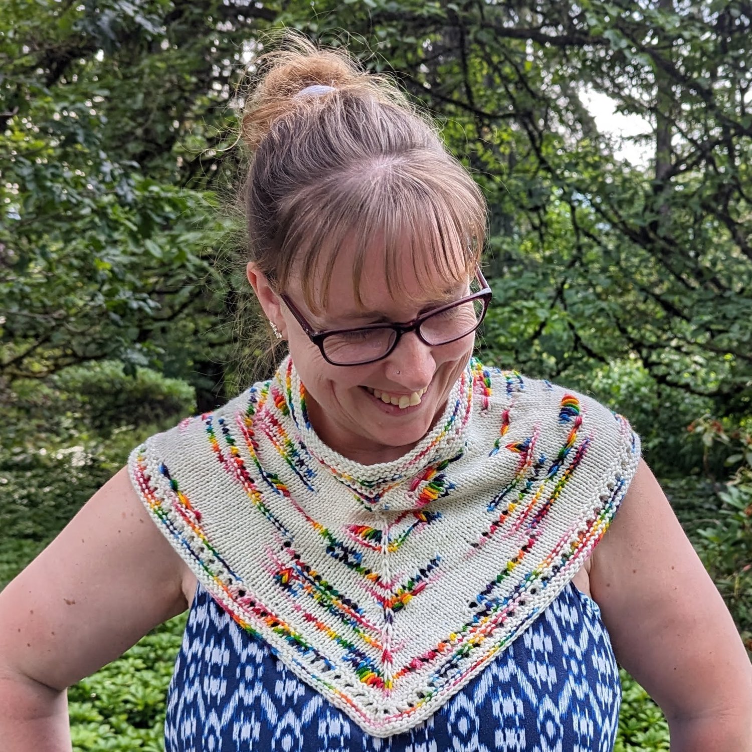 This cowl is all about personal choice. We start with a basic garter stitch. There is structure and a pattern to follow, but within that pattern you have choices. Will you choose one assigned pooling stitch or many? Which one will you choose? Which stitches are right for your cowl, and which ones don’t fit? It’s up to you. All patterns are recipes and this one especially so. Six different assigned pooling stitches are included in this pattern, but you should feel free to use your own, or just let the pooling in plain stockinette speak for itself. This is your cowl. Make it your own. Each cowl will be unique to the maker, for no two yarns will pool the same and each assigned pooling stitch will alter the color movement across the cowl. How will you style the cowl? With the bandana point in front? Something to the side? Or use the back split to create a center front collar? Let the Metaphorically Yours Cowl become just that: a metaphor for you - your choices, your life’s adventures. After all, no matter what the pattern says or the expectation is, your cowl and your life are entirely your own.
