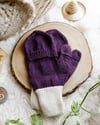 These mittens are constructed cuff up, with very minimal seaming around the welt pocket opening which does not interrupt the back of hand fabric. They come with an option for thumb opening in the form of a one-step button hole.